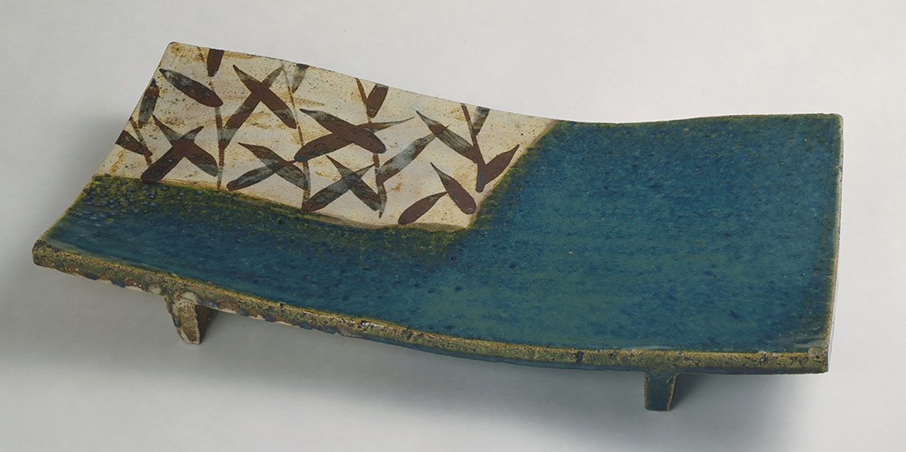 「北大路魯山人《織部俎板盤》(1949)、陶器、京都国立近代美術館