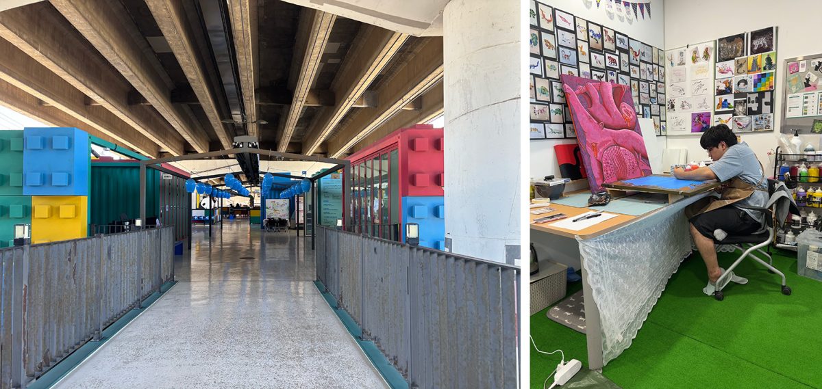 障害のあるアーティストのレジデンスプログラムを行なうのは、ソウルだけではない。釜山にも、釜山文化財団が運営する、障害のあるアーティストに特化しジャンルを問わずスタジオを貸し出す「オングル」がある。2年間と期間限定ではあるものの、地下鉄の駅に隣接したアクセスの良い場所で、自分専用の創作場所を持てる。わたしが訪れた時は、レジデンスアーティストのひとり、チョ・テソンがスタジオを訪れ、創作に没頭していた。韓国では大学入学前に芸術の経験がないと芸大や美大に入るのは難しいため、入学を諦めた経験があり、テソンのようなアーティストにとって集中できる環境があるのはとても有り難い、と彼の創作をサポートする叔母が話してくれた。