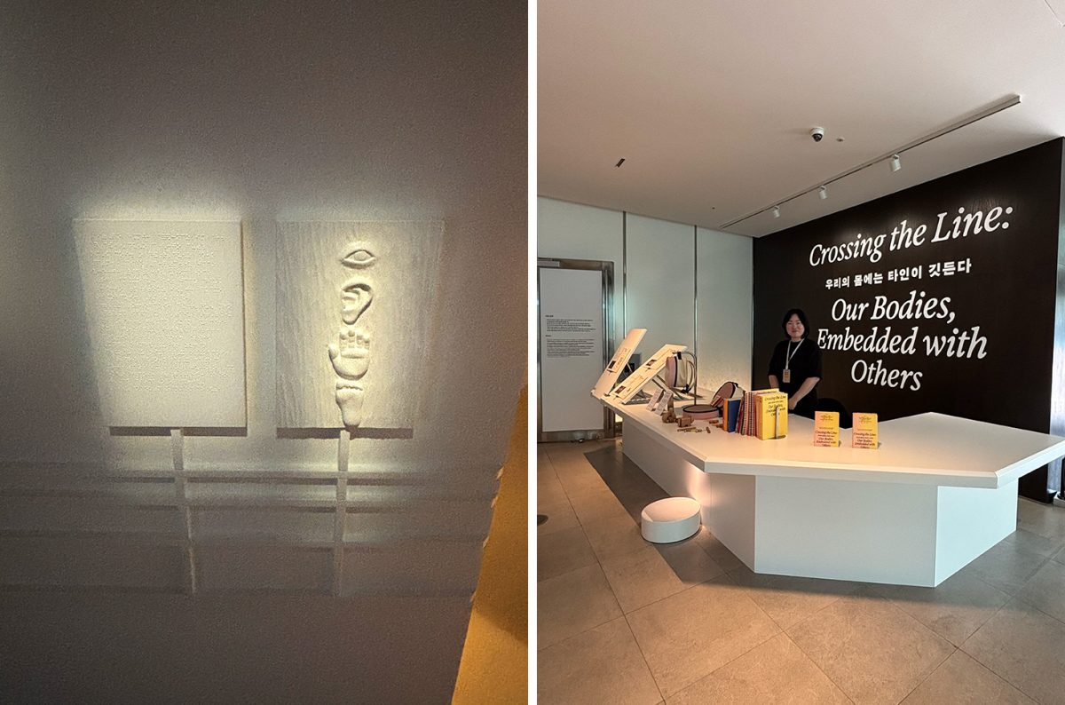 この数カ月、ソウル・光州・釜山の三都市にわたって、障害やアクセシビリティをテーマとした展覧会が同時に行なわれていた。ソウルの国立現代美術館(MMCA: National Museum of Modern and Contemporary Art, Korea)の「Looking After Each Other」展(2025/05/16-07/20)、光州の国立アジア文化殿堂(ACC: Asia Culture Center)の「Crossing the Line: Our Bodies, Embedded with Others」展(2025/04/17-06/29、その後Modu Art Spaceにて2025/07/23-08/22に開催)、釜山現代美術館の「Seeing with Ten Fingers」(2025/05/03-09/07)である。時期は館同士で協議されたものではなく、あくまで偶然だそうだ。上記のような政府による政策や、ICOM(国際博物館会議)によって改訂された博物館の定義、ESG経営★8への関心の高まりや地域の高齢化の影響など、それぞれの館が持つ異なる動機とキュレーターの関心が重なったことで実現された。