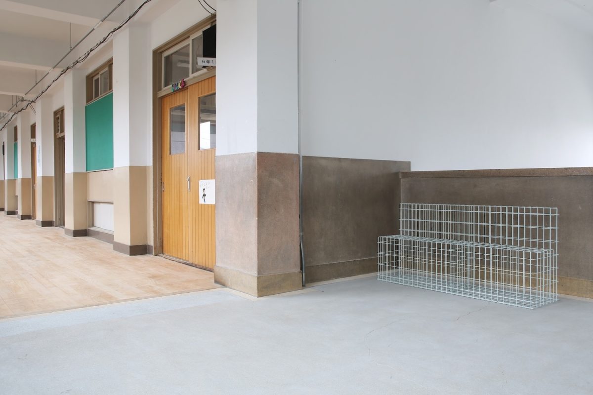 その様子から、わたしは2015年に実施した移転整備プレ事業「still moving」(2015/03/7-05/10)のことを思い出していた。当時、すでに閉校していた元崇仁小学校の建物を主な会場として行なった最初の展覧会だった。会場構成を担った建築家の長坂常により、教室と廊下の床のうち展示で使用する部分のすべての表層を削り取り、ホワイト・キューブの壁面のように情報量の少ない状態にして、その上の空間を展示作品さながらに浮かび上がらせるという演出がなされた。床に色濃く残された時間と痕跡を物理的に「消去」する、という大胆な発想にとても驚いたのを覚えている。もちろん、掃除と削るのでは大きな違いがあるが、古い空間を構成するもののうち、何に価値を見出し、どのように活用するのかという点で、建築と美術とでは考え方が大きく異なる場合がある、ということを再認識したのだった。