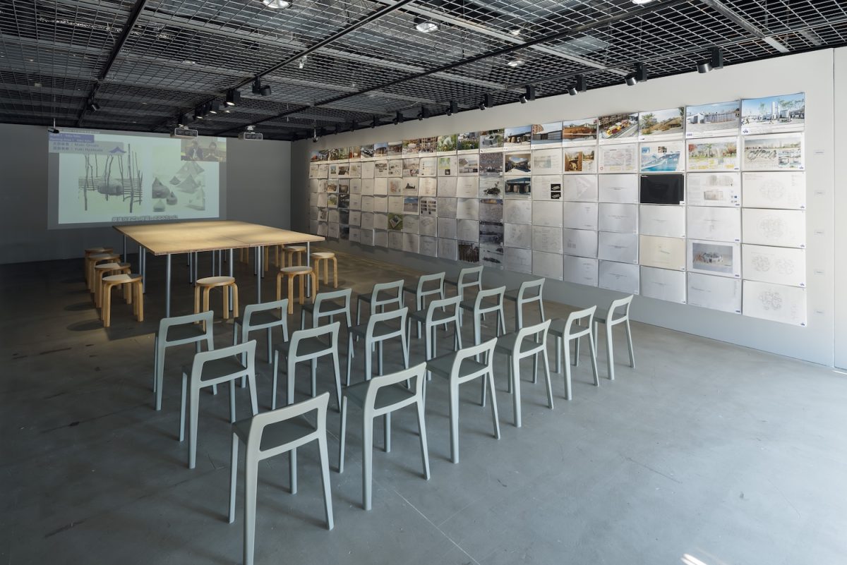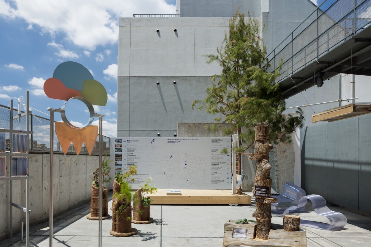 6月下旬、2日間半かけて大阪・関西万博に行ってきたのだが、正直、人気パビリオンの予約取得合戦に明け暮れてしまい、周りの環境をゆっくりと眺める余裕があまりなかった。本展を観て、その点をとても悔やんだ。実は万博が開催される3年前の2022年、休憩所やトイレなど20施設について、設計業務を担う若手建築家を選定する公募型プロポーザルが行なわれていたという。審査員は会場デザインプロデューサーを務めた藤本壮介らである。ユニークなのは公募参加資格のひとつに、1980年1月1日以降生まれであることを掲げていたことだ。今後の活躍が期待される若手建築家に意欲的かつ大胆な提案をしてもらい、魅力的な施設を創出することをその目的として謳っているが、きっと応援の意味も込められていたのだろう。若手に限らず、建築家にとって公募型プロポーザルは大きな仕事を得るための手段になると同時に、自らの実力を試し、また世間へアピールする場ともなる。そうした貴重な機会を若手に限定して設けたことは、高く評価したいと思った。
