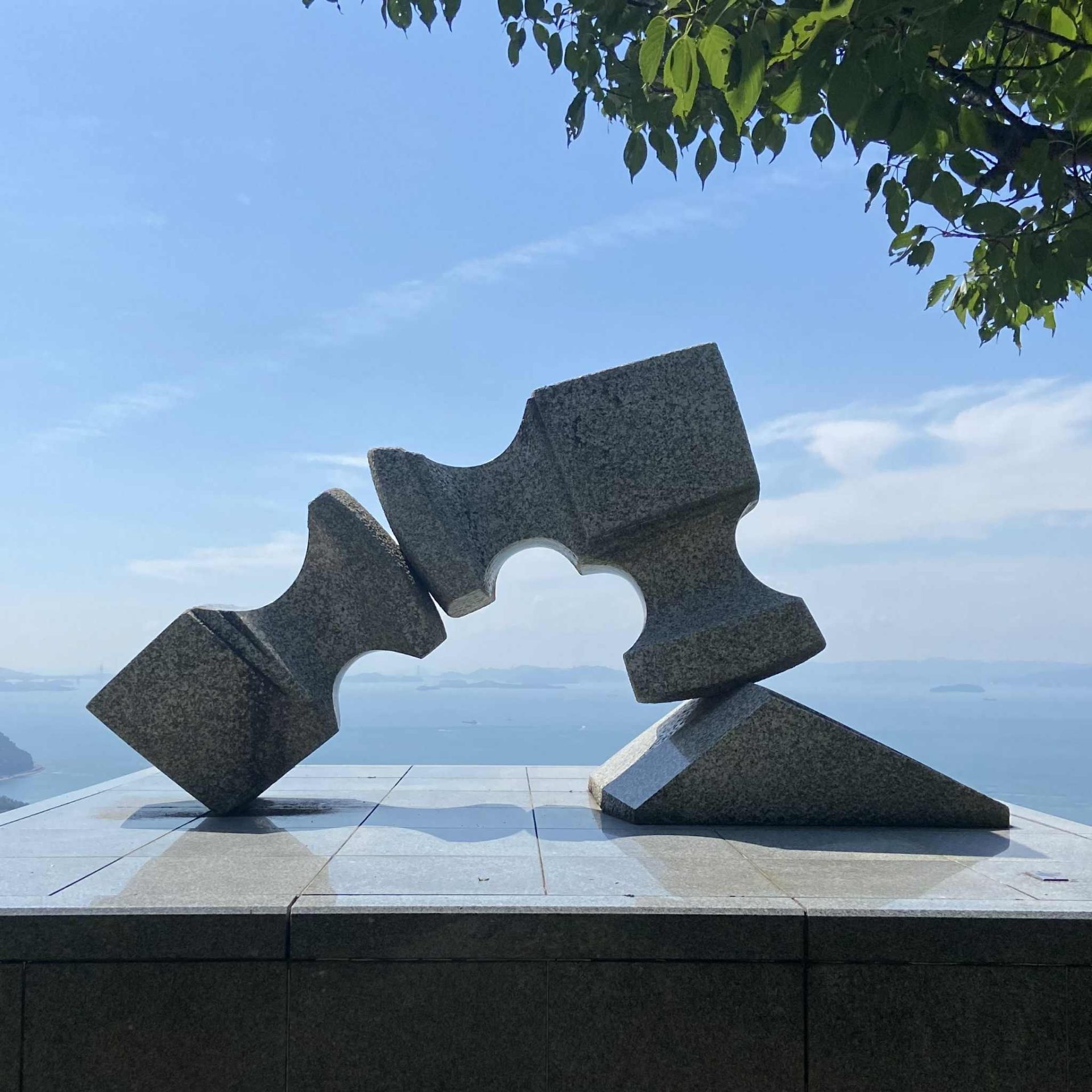 五色台の彫刻、流政之《またきまい》[筆者撮影]