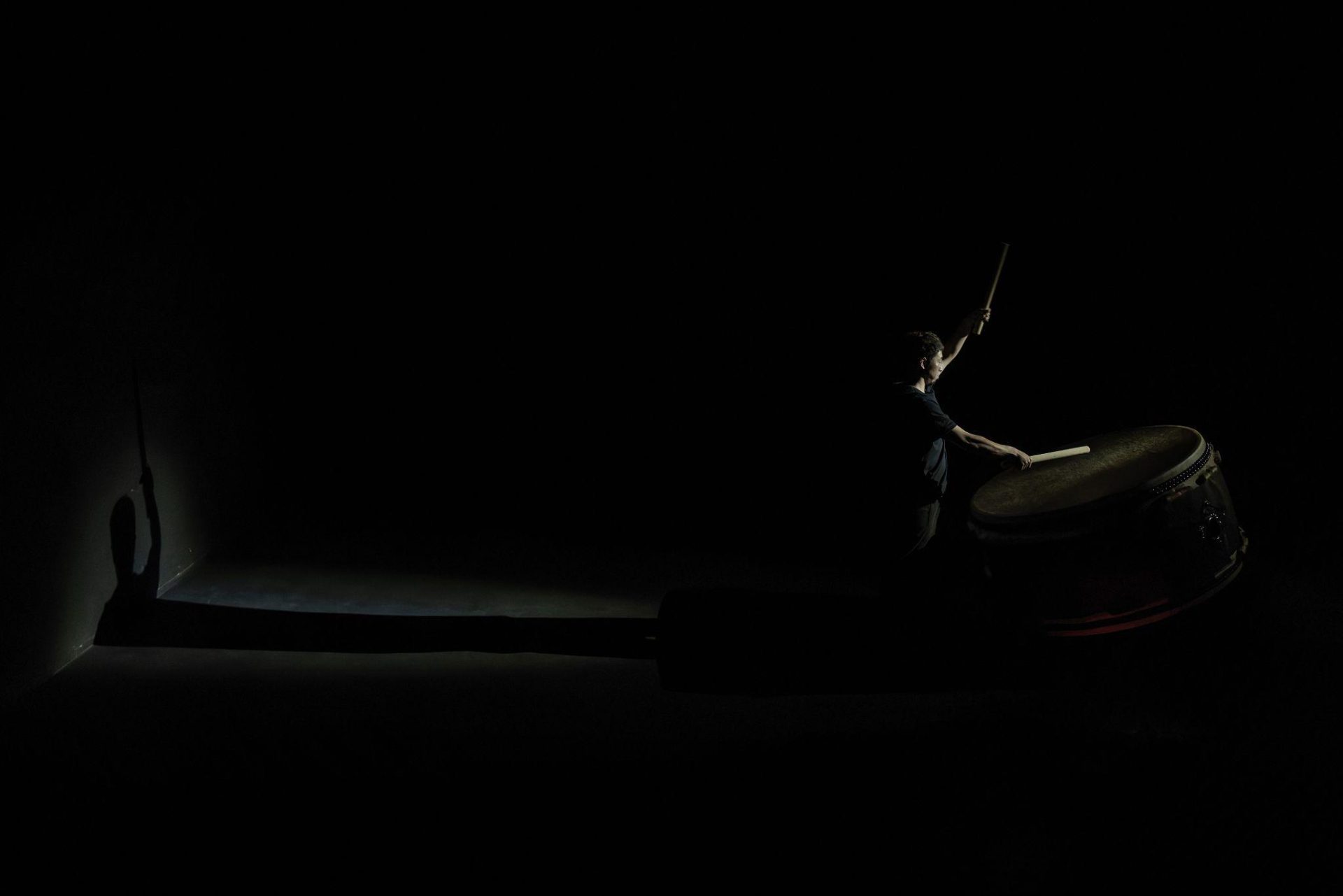 日野は、《Virginal Variations》や《GEIST》のような大編成の楽器演奏者からなるサウンドピースにより、大規模なスピーカー構成や全身的な聴取体験を設計する一方、近年は《KAKUHAN》や《Phase Transition》で、より小編成での電子音と打楽器などの連動する試みを重ねてきた。本作は、その流れを汲みつつも、より焦点を絞り、「打面—身体—可視化」という三者の連結をミニマムな要素で極めようとする意志が貫かれている。大太鼓という大物はあれど、数個のポータブルな打楽器と、この公演のためにカスタム制作されたであろう照明群のみで成立するその簡潔さは、本作が持つストイックな志向性と深く連動している。そして何より、この身軽さは、今後の国内外でのツアー展開における機動性という点で、極めて大きなアドバンテージとなるだろう。(筆者自身、日野の《GEIST》の制作を担った経験から、作品の稼働力の有無が、その後の展開を大きく左右することを実感している。)
