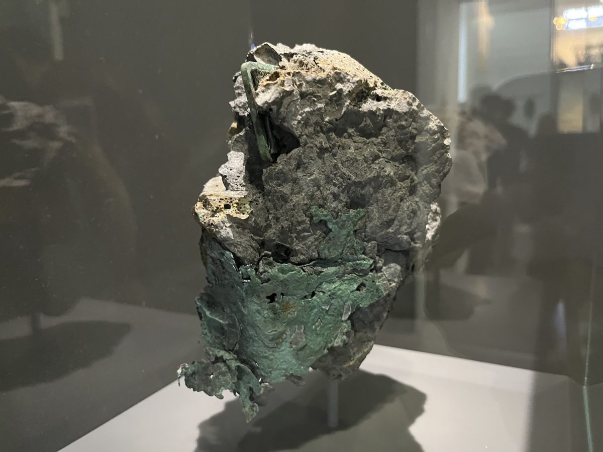 私が面食らった作品はジュリアン・シャリエールの《Metamorphism》。実は電子廃棄物を高温で溶かし固めた人工の岩だ。よくみると石の中に携帯電話のような板が挟まっている。内部にはマザーボードやケーブルが眠っているという。