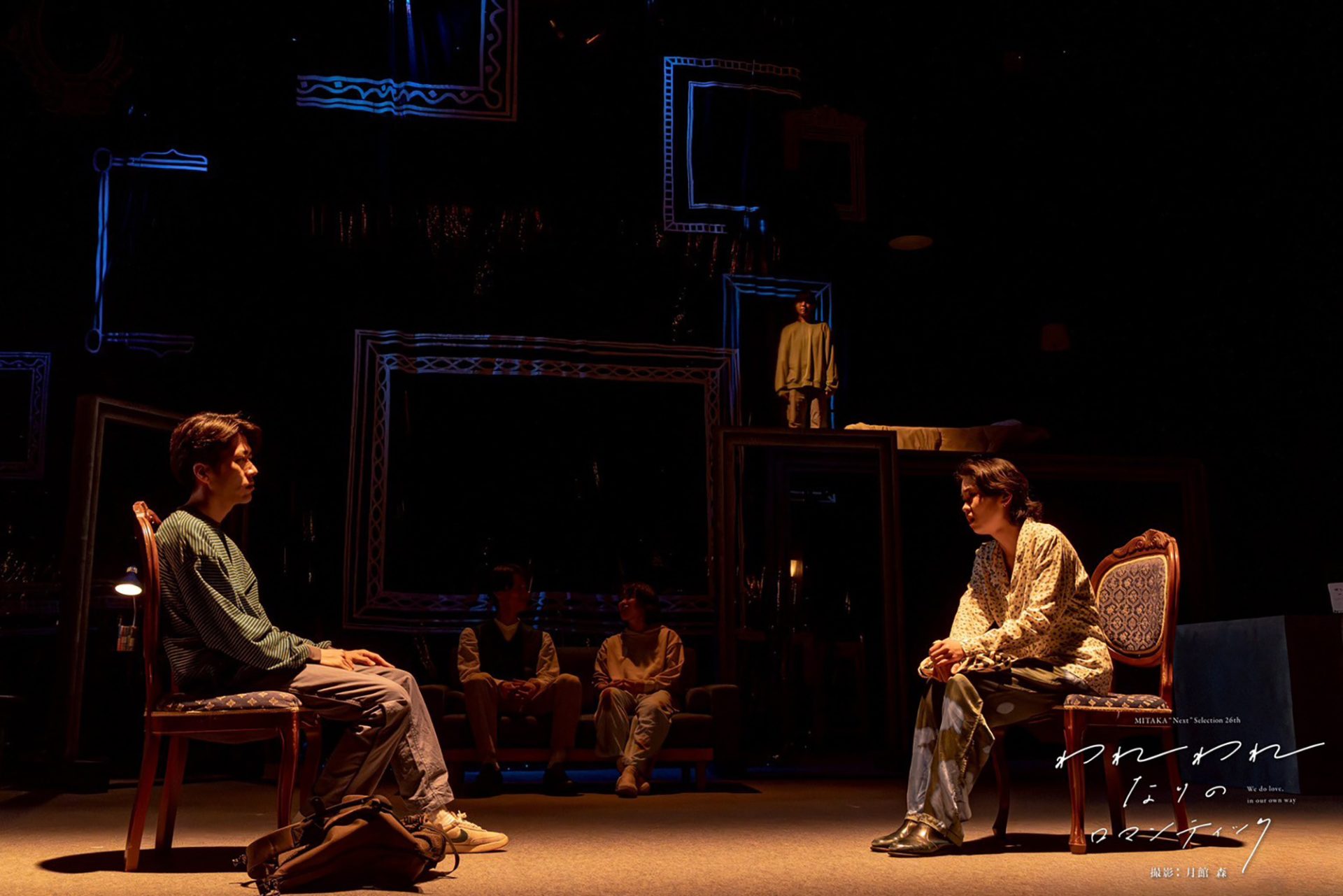 蒼がクワロマンティックという言葉について「自分は、それに名前があるって知って救われたので」と言っているように、この演劇によって救われた思いがする観客は確実にいるだろう。だがそれだけに気になったのは、多様なセクシュアリティやパートナーシップが描かれている一方で、それゆえにパートナーシップを築くことが前提になりすぎてはいないだろうかという点だ。端的に言ってしまえば、この作品に独り身の居場所はないように感じてしまったのだ。もちろん、あらゆるセクシュアリティをひとつの作品で描くことは非現実的ではあるのだが、選択肢として独り身でいることをも肯定するような作品であってほしかった、というのは過ぎた要求だろうか。