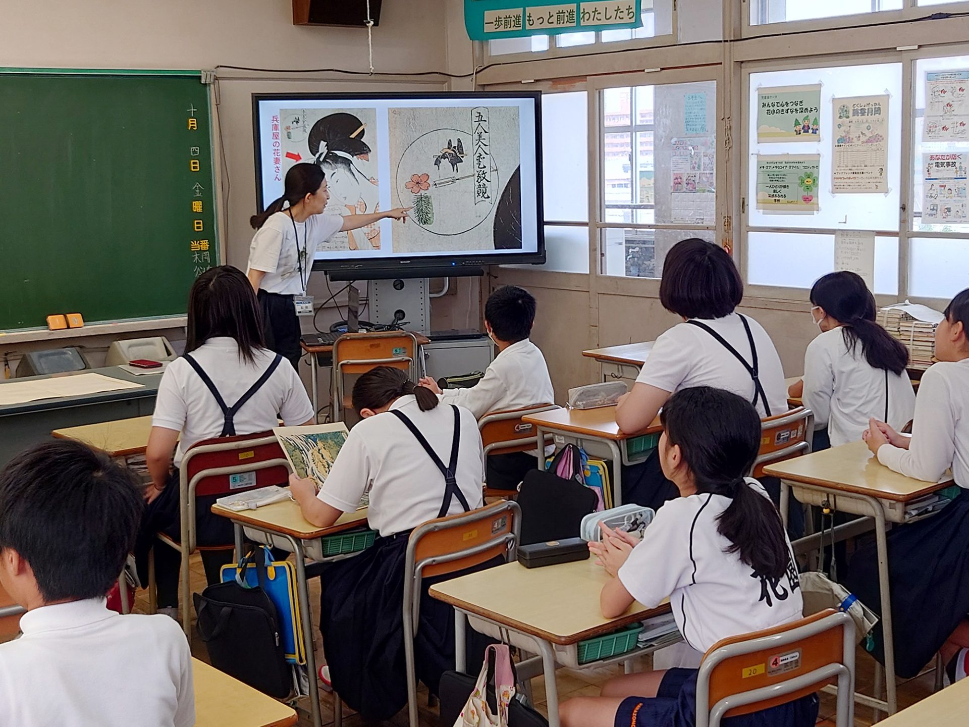 石田──はい。そのときは保険に入りましたが、そんな感じで作品を外に持ち出せる状況になり、始まったのが「お出かけ美術館」という取り組みです。美術館の内部的には、上田さんの展示の関連プログラムとして、広報と事前説明も兼ねていると説明しましたね。小学校だと、上田展の際に2校、コレクション展の際に4校、2024年の「五大浮世絵師展─歌麿 写楽 北斎 広重 国芳」の際に10校と、これまで三つの展覧会で合計16校を訪れています。
