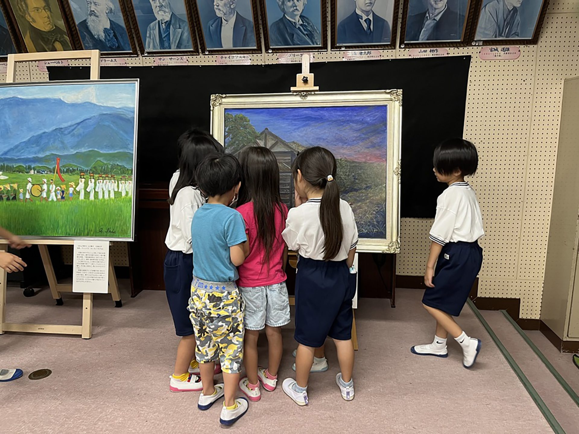 小学校の音楽室での金陽会の展示[写真提供:藏座江美]