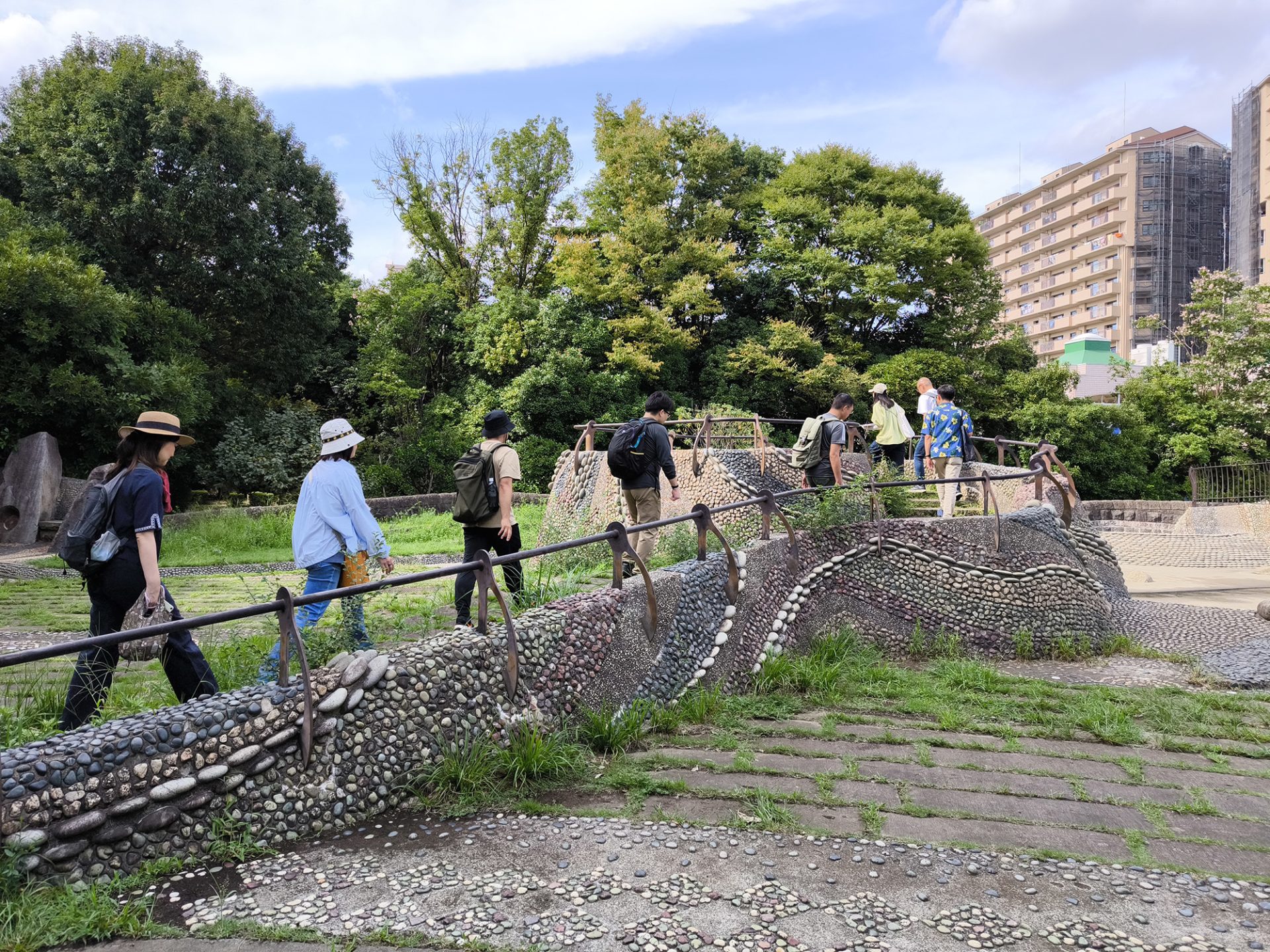 今回のツアーは、前野が暮らす神奈川県横浜市の港北ニュータウンの遊歩道沿いで実施された。20名弱の参加者が集まった。他地域でのディープ・タイム・ウォークへの参加経験がある人、前野の講義やワークショップを受けている人、地元の人、知人に誘われた人。自身がツアーガイドを務めている人もいた。