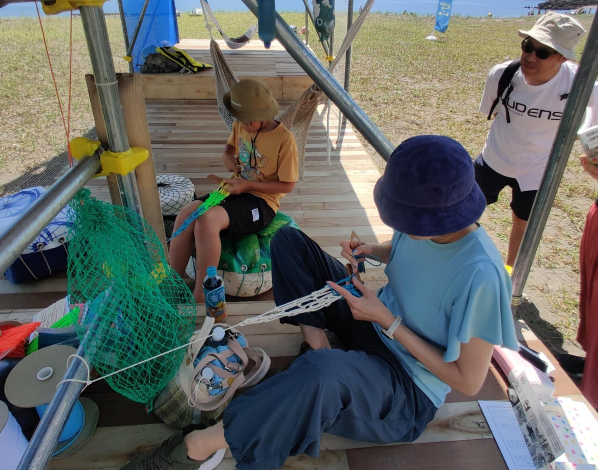 2024年、渡部が白老でワークショップをした際に参加者と編み上げたハンモック[提供:一般社団法人SHIRAOI PROJECTS]