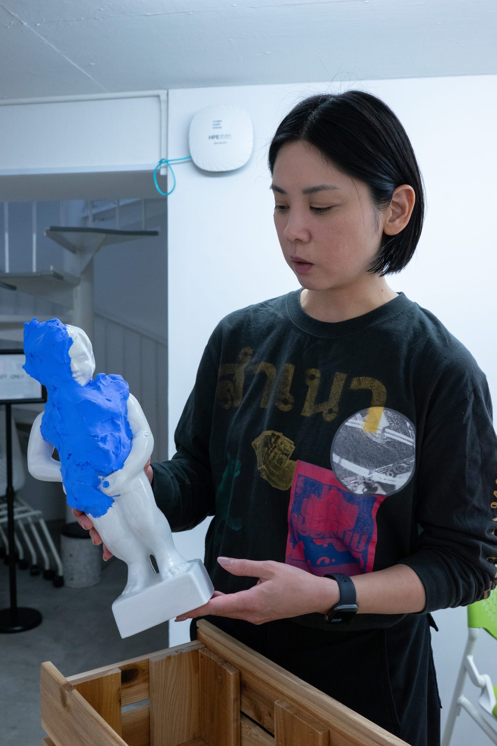 アーティストとの協働という点では、ナディッフ・アパートの最初のこけらおとし展(2008年)、10周年記念(2018年)、最後の閉店記念展(2025年)の各節目を盛り上げてくれたChim↑Pomと制作した《ジュリアン坊や(Juliaanske)》というマルティプルがあります。2018年の展覧会の際にリリースしたものですが、小便小僧の像のなかには2008年のこけらおとし展の際のポジフィルムと映像作品が収録されたUSBが入っているのですが、これは壊さないと中身を取り出せないんです。仏像の中に入っている胎内納入物の形式を借りた構造なのですが、ナディッフ・アパートの過去の時間とChim↑Pomの作品を内包させた、個人的にもとても思い出深いマルティプルです。こうした作品の性質や、作られた背景など、簡単に伝えられるものではなかったですが、お客様のさまざまな「?」を受け取りながら、コミュニケーションしていく過程も楽しかった記憶があります。