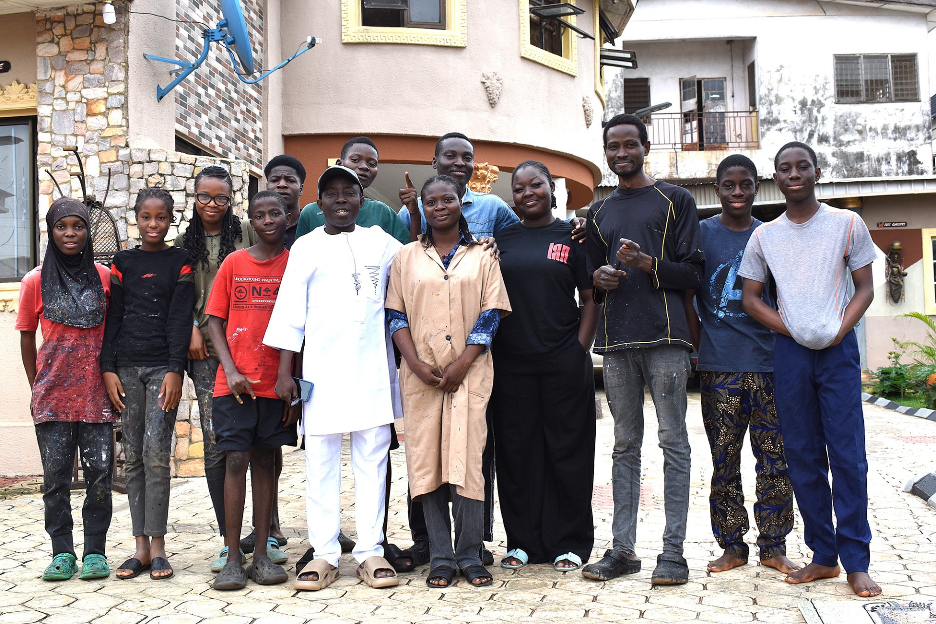 1998年にはオバフェミ・アウォロウォ大学の美術学科修士課程に進学し、大学院生の寮で絵を描きながら作品を販売していた。2000年に修士課程を修了し、寮を出てイレ・イフェ市内の住宅地を拠点にアーティストとして独立する。2008年自宅兼アトリエを建て、自宅敷地内のギャラリーで絵画作品を展示・販売し、2010年には市内の繁華街に小規模なギャラリースペースを借りて作品を販売した。母校の大学で美術の講義も行なっていたが、制作時間が少なくなり収入も減ることから、作品制作に専念する。100人以上の弟子たちを育成してきた[図1]。