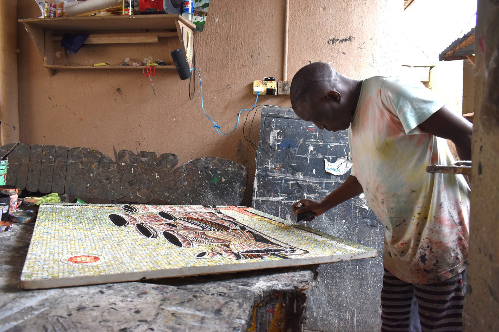 ナイジェリアのアーティストには、大学の美術学科教員や学生たち、「アート」や「アーティスト」という看板を掲げて店を持つ人たち、伝統首長を主な顧客としてビーズ細工や木彫を作る人たち、自宅の一室をアトリエにして絵画や版画、コラージュや染織の作品を作っている人たちなど、さまざまなアーティストがいる。だが、個々の客の要望に応じたオーダーメイドのアートが、日常的なアートとして市民に親しまれている点は注目されてこなかったと緒方氏は言う。