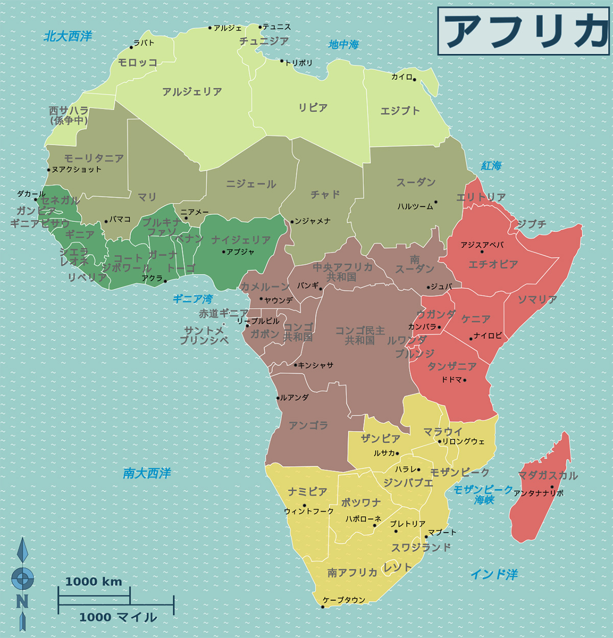 アフリカ地図(Tmv, CC BY-SA 4.0, https://commons.wikimedia.org/w/index.php?curid=93723003)