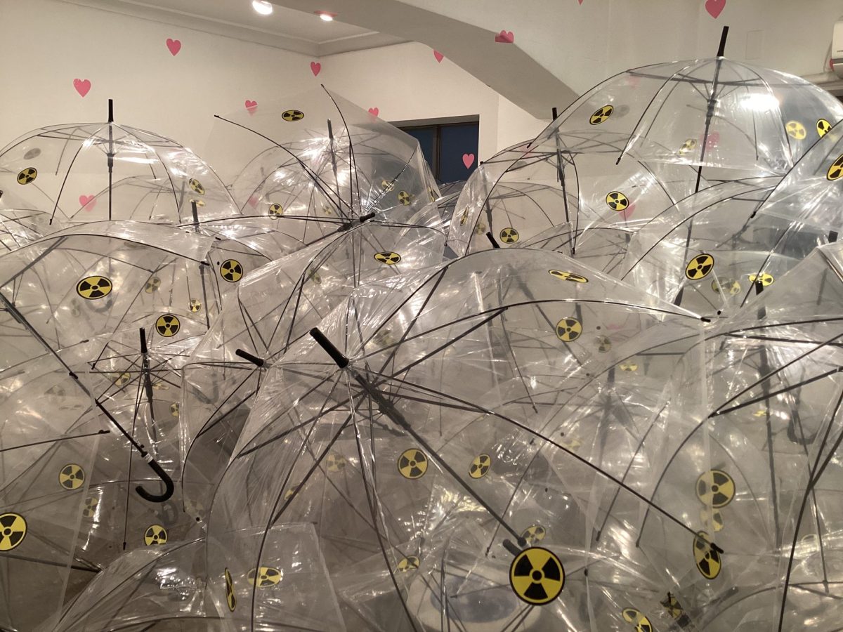 矢作隆一はメキシコ・ベラクルス州ハラパ在住のアーティスト。このところ日本での展示も増え、その存在感が増してきている。本来は石彫を中心に制作してきたのだが、写真やインスタレーションも積極的に試みており、多次元的な作品展示を見ることができる。今回の東京・銀座、巷房での個展では、3階(巷房1)、地下(巷房2)、階段下の3会場を、「ラッキー・ノーストライク」という総タイトルで構成していた。今年は「戦後80年」の年であるとともに、矢作がハラパに住み始めてから30年目になるという。日本が「唯一の被爆国」であることを、どうしても意識せざるをえないこの年を迎えて、矢作は核の問題をストレートに取りあげた。原発マークを貼り付けたビニール傘を108個積み重ねる。広島と長崎で行なわれた、原爆投下の日の式典を報じた新聞記事で鶴や舟を折る。広島と長崎で採取した石をメキシコの石でそっくりそのまま模刻する――そのような作業を通じて、われわれの現在が、たまたま原爆が落ちていない(「ラッキー・ノーストライク」)という危うい状況で、ギリギリ成り立っていることが伝わってきた。