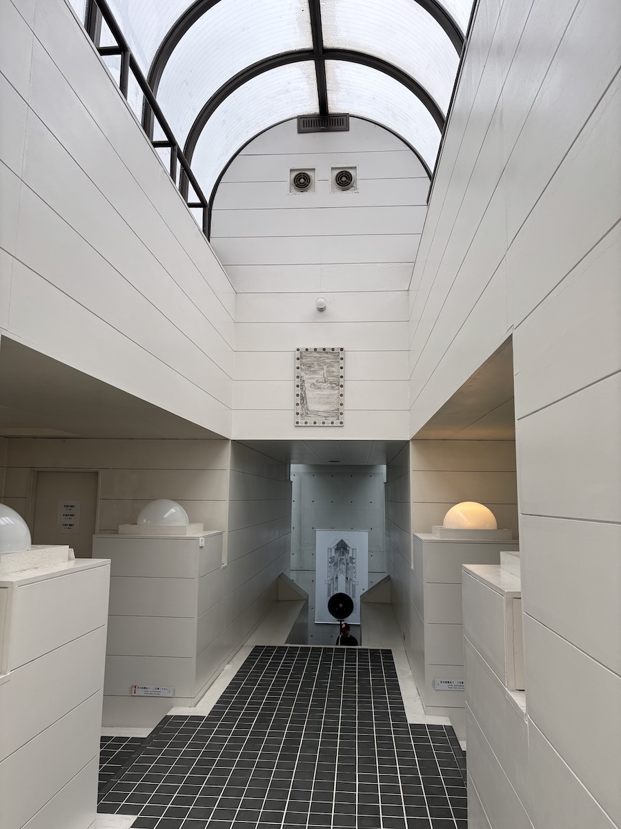 最初に行ったときは、まだ粟津さんの作品や蔵書、粟津さんご自身が各地で集められた遺品が残っていました。その後、作品の多くは金沢21世紀美術館に寄贈されたので、アワヅハウスアートセンターは、たとえば東京・青山にある岡本太郎記念館のように、アトリエの様子を見ることができたり、保存・収蔵されている作品を鑑賞できるような場所ではありません。1972年に建てられた建物は原広司さんによって設計されたもので、彼の「集落」の調査から生まれた建築や住居に対する考え方が表わされた初期の作品として有名です。行くと、現役の現代建築のマスターピースを訪れる建築関係の若い人の靴で、入口があふれかえっていることが幾度もありました。