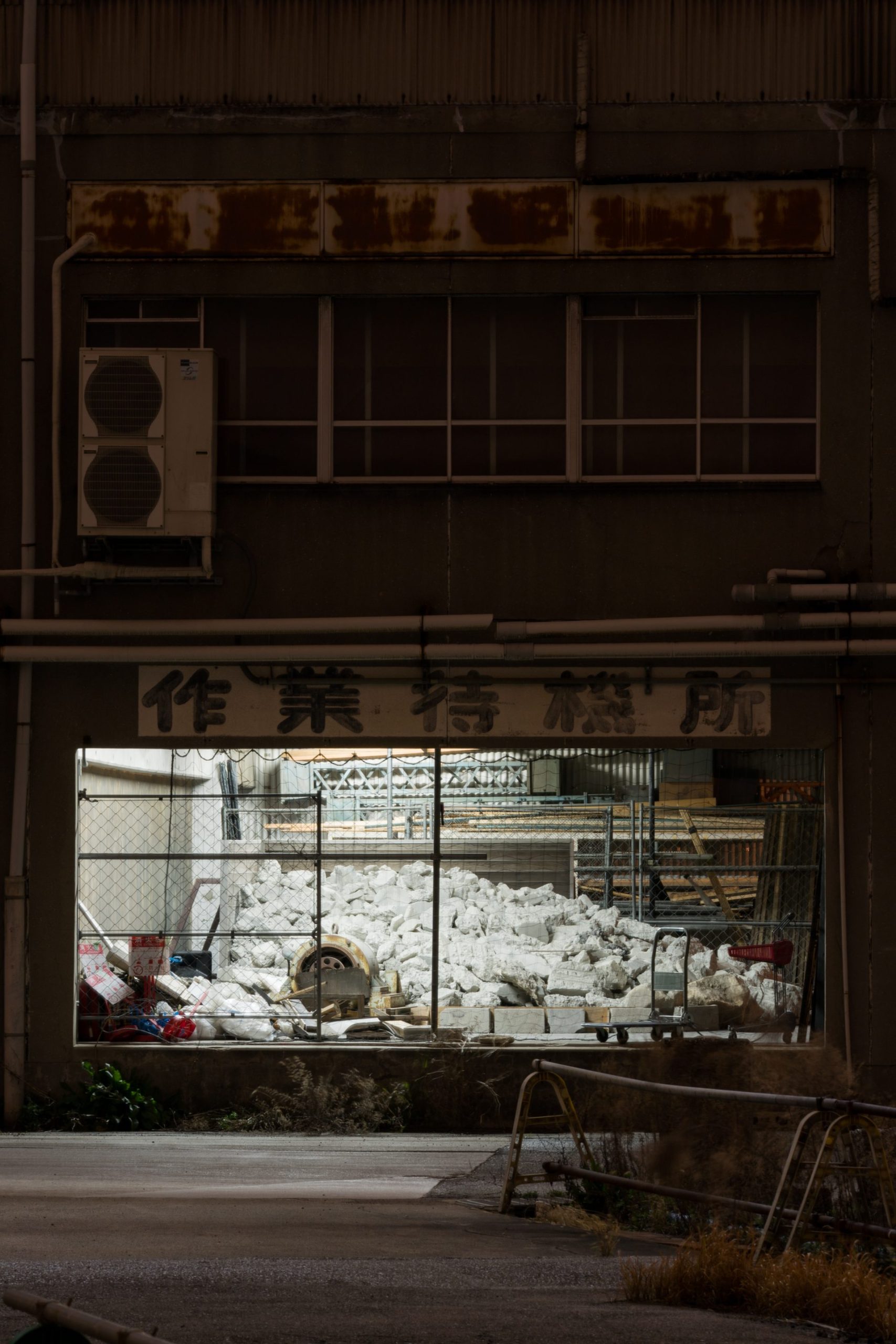 竹久──私が大学生から作家としてのキャリア初期を過ごした2015-22年ごろは、取り壊しの決まっている空きビルや民家をそのまま使うなど、何年も稼働しない前提の会場で行なわれる展覧会が多かった。また、大型のインスタレーション(単一の彫刻ではないところに留意すべきです)が屋外に設置されることもままありました。このような事情から、私が向き合うことになったのはホワイトキューブのインスタレーションビューとは対照的な、展覧会会場としては劣悪とも言える状況のなかで使役される作家の手つきをどう撮るか、ということでした。