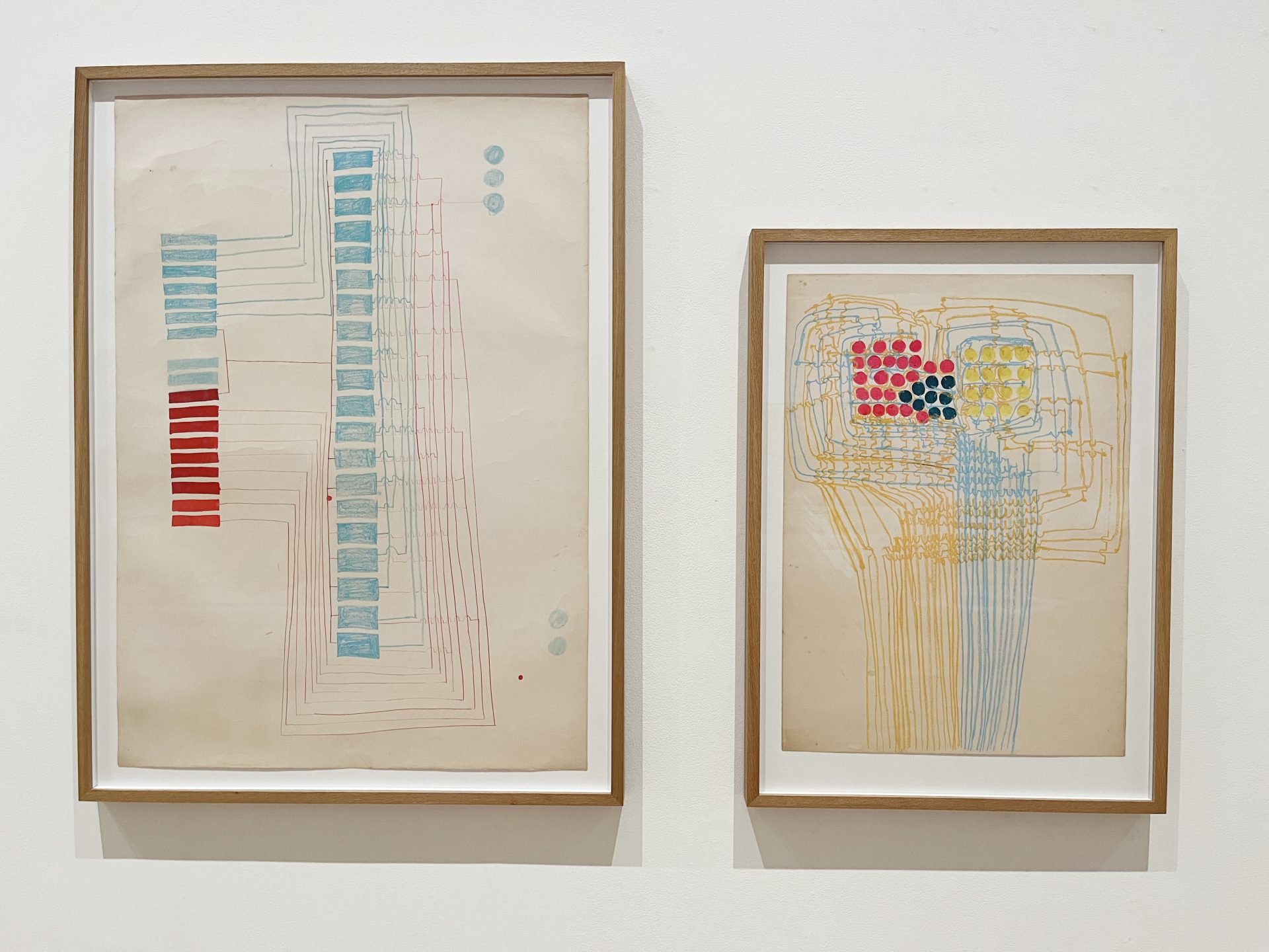 福島秀子はパウル・クレーに私淑するかのような絵画を制作してきた。キャンバスを覆うぼかしやムラのある色調と対照的に、黒色による円や線のかすれを用いるという自分のスタイルを作り上げている。そうした仕事に対する評価が充分であったかという点はもっと検証されてよいのだろう。田中敦子は《電気服》を絵画として表現した著名なシリーズのみならず、電子回路のイメージを描いたスケッチ的な絵画が出品され、創作に対する一貫性が伝わりやすいように紹介されていた。