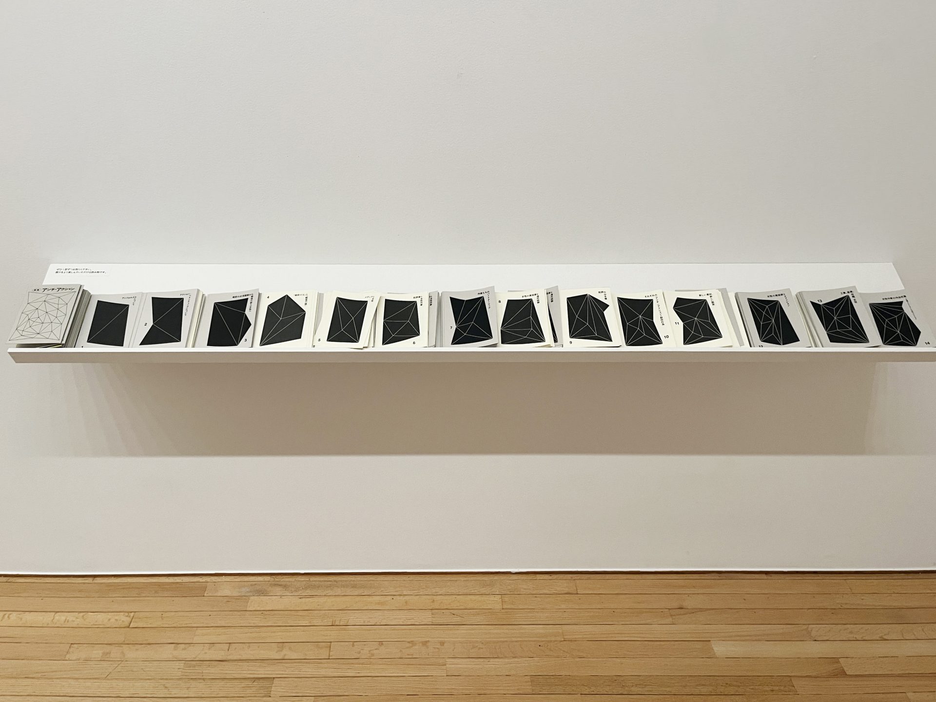 本展は二つの展示室からなる。前室に位置付けられる空間には鑑賞者が自ら仕立てるリーフレットと年表、出品者14名の作品が1点ずつ展覧されている。年表は1945年から1963年までの日本美術史の流れ、その美術史における女性作家の扱い、また出品作家の活動を取り上げている。年表の終わりには約20年の出来事を概観するテキストがあり、この内容こそ本展の基盤となる視点と思われる。
