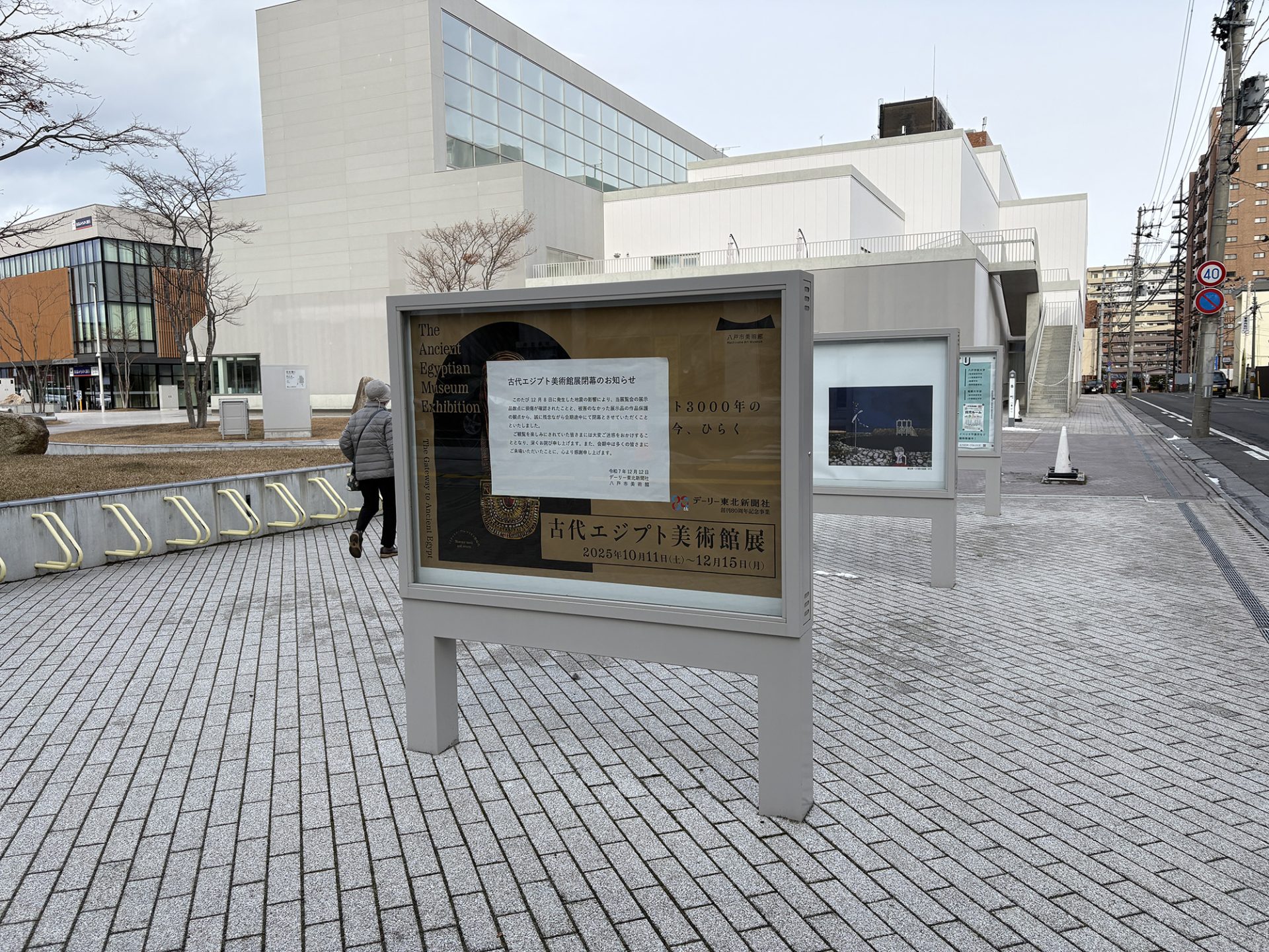 筆者の勤務する八戸市美術館は、建物に大きな被害はなく、休館日を含め3日間の休館措置中に作品の確認作業を行ない、12月12日より開館することができた。しかし、開催中であった「古代エジプト美術館展」(主催:デーリー東北新聞社)は展示資料の一部に損傷が確認されたため、作品保護の観点から会期最後の週末を待たずに途中閉幕の判断とした。