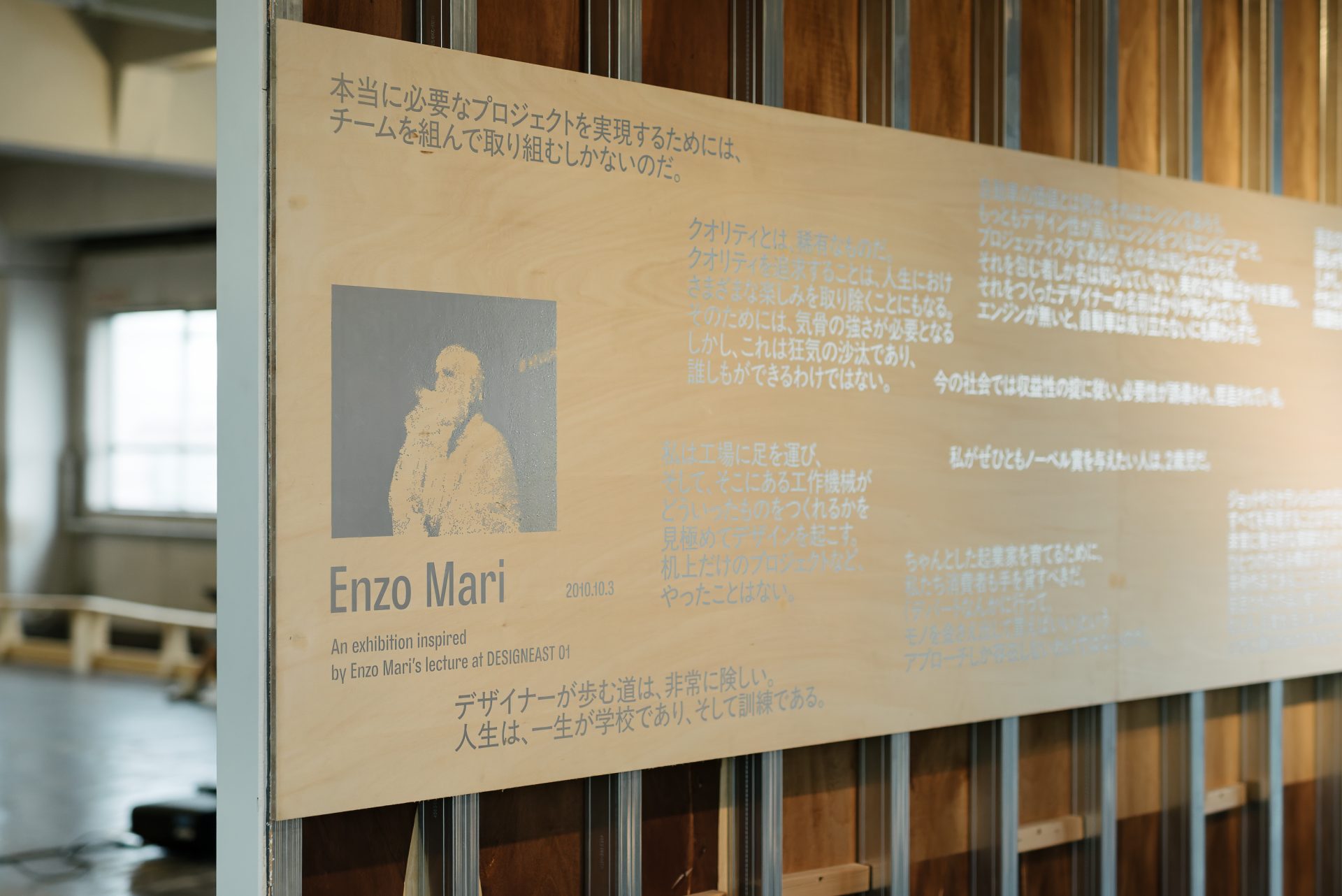 佐野氏のここでの意見は、「反権威」や「民主化」というキーワードで要約できるだろう。この姿勢がよくわかる象徴的な出来事として、「DESIGNEAST 01」(2010)ではイタリアからデザイナーのエンツォ・マーリが招聘されていたことが思い出される。マーリは、デザインを社会や生活の根源から問い直す姿勢で知られている。彼の作品集『AUTOPROGETTAZIONE?』は、自前で組み立てられる家具を作るプロジェクトであり、消費主義に抗う姿勢を打ち出すものでもあった。