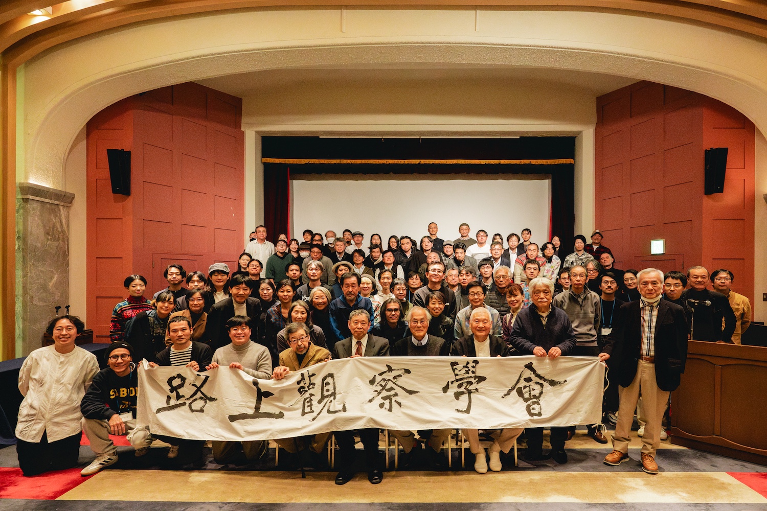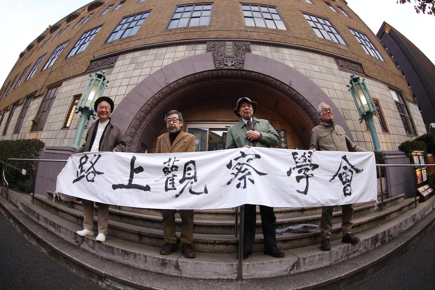 路上観察学会からは、藤森さん、南さん、林さん、松田さんの4名の予定を押さえた。企画は、90年代から学会の活動を支え続け、路上観察学会事務局を担っている同文社の前田さん、濱田研吾さんとで練ることとなった。ただ、前述の通り、この40周年に向けては路上観察学会メンバーと、いま「路上」に目を向ける若い世代とをつなぐことが目的である。そこで中島晴矢さん、中村裕太さん、山川志典さん、扉野良人さん、栗生はるかさん、鈴木康広さん、惠谷浩子さん、頼安ブルノ礼市さん、山本周さんというメンバーにも、運営に加わってもらった。路上観察学会初期メンバーが語る第1部に引き続き、第2部で若手の「路上」に向ける目を共有する場をもったのだ。受付やパソコン操作まで含めて、このメンバー無しには実現できなかった。クローズな会だったが、結成時と同じように横断幕を学士会館の前に掲げることもでき、2026年に向けての機運を高めることができた、このキックオフの存在は大きかった。ありがとう、長期休館?