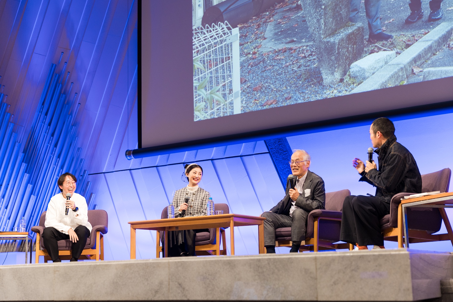 国立京都国際会館でのトークイベント 左から筆者、常盤貴子さん、藤森照信さん、鈴木康広さん[撮影:衣笠名津美]