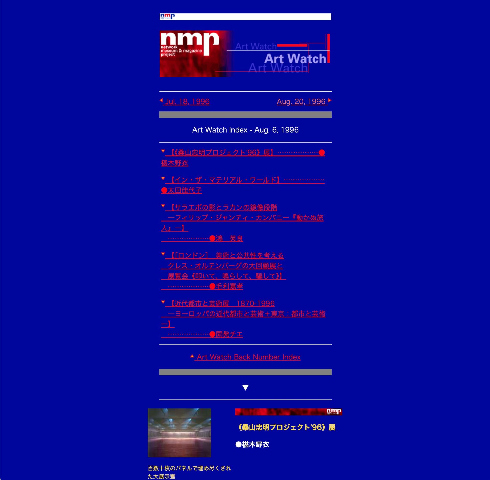 Art Watch Index – Aug. 6, 1996(1996年08月06日)