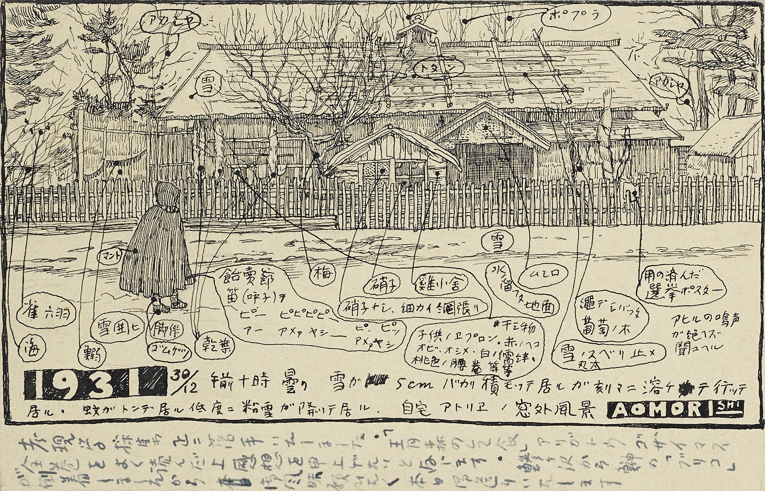 今純三《考現学調査葉書 自宅アトリエの窓外風景》(1931)、工学院大学 学術情報センター工手の泉蔵