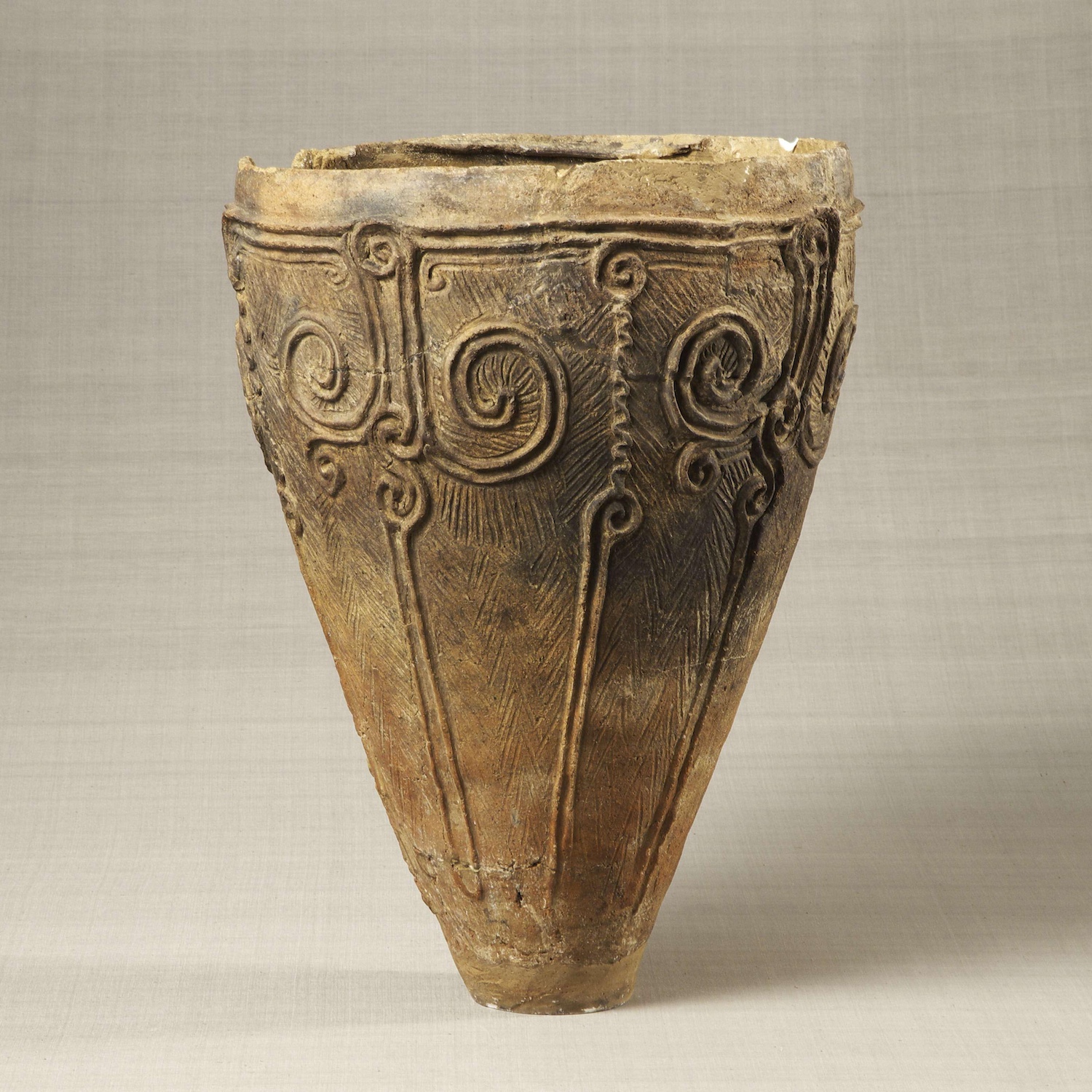 深鉢、長野県南安曇郡小倉村出土(縄文時代、BC2800)、52.7×39.0cm、日本民藝館蔵