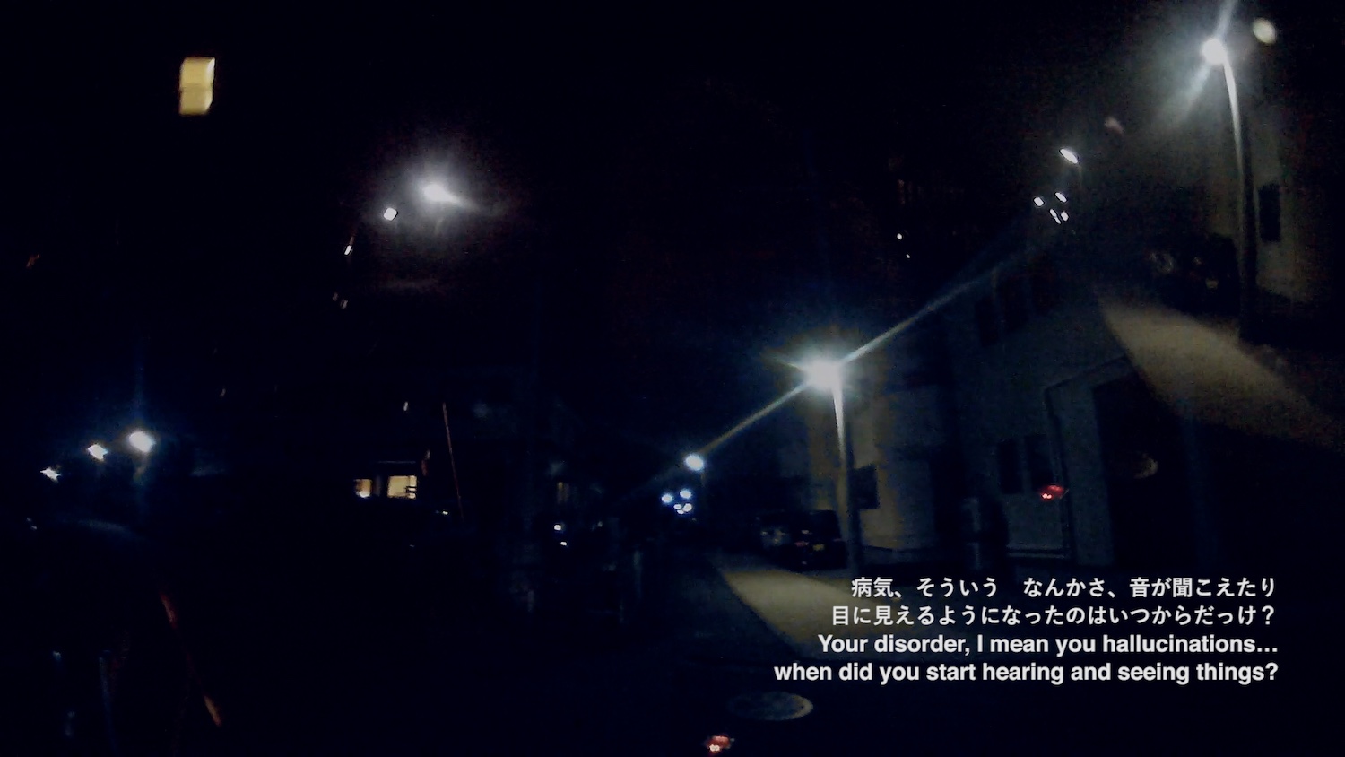 飯山の《In-Mates》もまた、近代帝国日本が何重にも周縁化してきた他者についての語りを、地下道という舞台において回復しようとするものだ★2 。飯山は、先述の《海の観音さまに会いにいく》の制作時に日本の精神医療史を学ぶなかで、戦前の東京にあった精神病院・王子脳病院に、2名の朝鮮人男性が入院していたことを知る。本作では、看護日誌に残されていた2名の記録を元に、在日コリアン2.5世のラッパー、FUNIが文字通り声を吹き込む。《In-Mates》のキーとなるのが、韓国語、日本語、英語の3言語の多層構造が示す、アイデンティティの混乱と回復、そして連帯への希求である。「ここはどこだ?」と記憶喪失のように呆然と暗い地下道に佇むFUNI。彼は2名の患者が乗り移ったかのように、韓国語でつぶやく。「俺を助けてくれてありがとう」という言葉は、精神病院の医師や看護師たちに向けたもののようだ。「俺もあんたらみたいにいいことしたら ここを出れるかな?」という言葉には、精神病院/在日コリアンという二重の拘束からの脱出が掛けられている。「俺の名前は岡本信吉」と名乗る彼は、「俺は日本人だから朝鮮人は全員抹殺だ」「俺は朝鮮人だから殺してくれ」という分裂した語りを展開し、在日コリアンの生自体が歴史的に精神的な分裂状態を生きざるを得なかったことを突きつける。