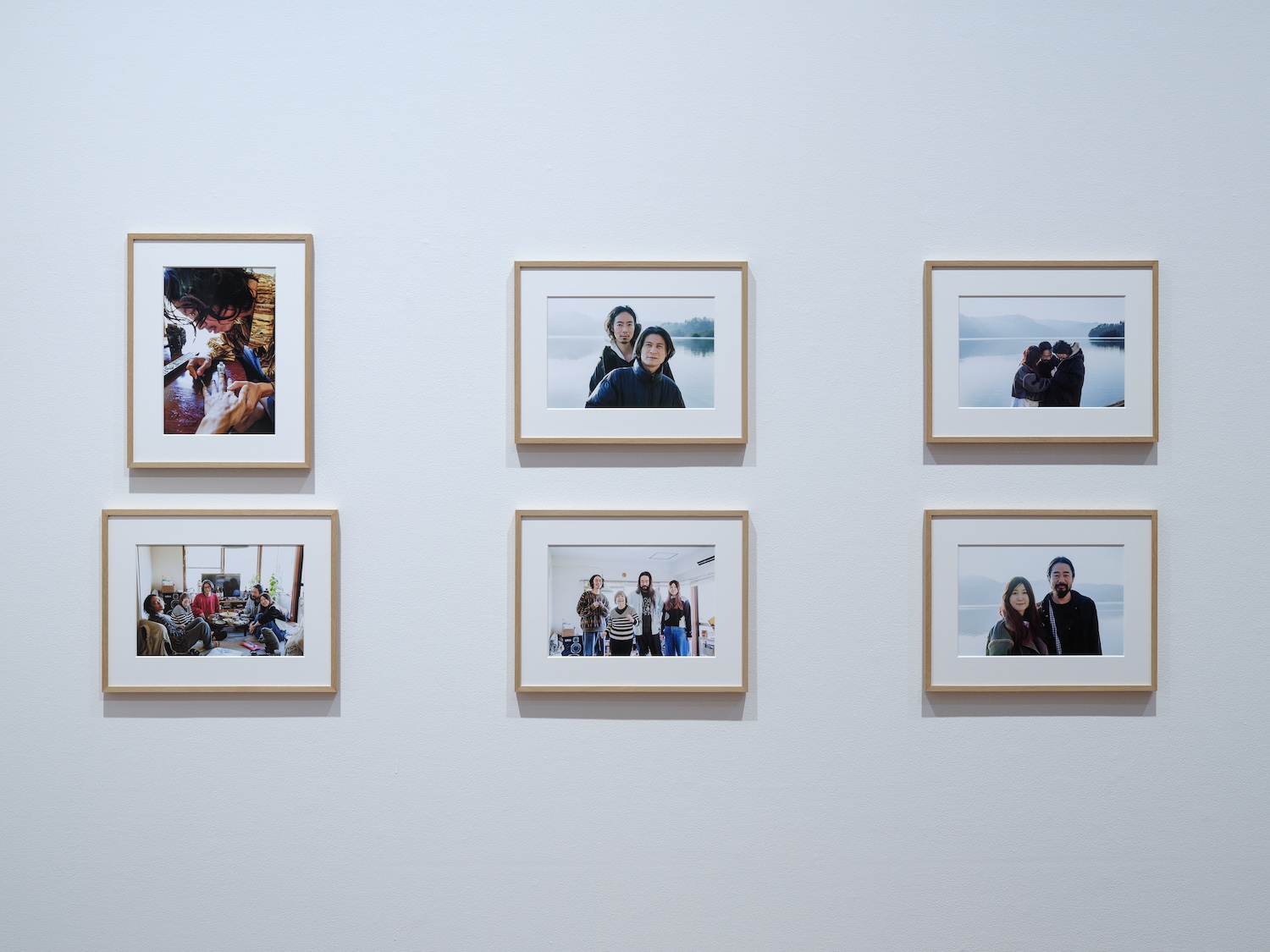規範化された家族像を、生活の営み方そのものによってどう解体・拡張していくことができるか。この問いを自覚的に引き受けるのが、金川晋吾の《明るくていい部屋》だ★1 。金川は2019年より、アーティストの斎藤玲児と百瀬文と3人での共同生活を始めた。部屋探しでは、女性と男性のカップル以外の複数の大人が住むことを許容する賃貸物件が極めて少なく、婚姻や血縁を標準として設計された社会構造に直面したという。また、一緒に暮らすうちに、金川と百瀬の関係は性愛から友愛に近いものへと変化し、2022年からは百瀬のパートナーとしてアーティストの森山泰地が加わり、現在は4人で生活している。金川の写真には、一緒にご飯を食べ、必要以上に気を遣わず、時に「他人」には見せないようなプライベートな姿が、透明感のある光とともに収められている。また、金川自身のセルフポートレートでは、規範化された関係性を脱しながら生活するなかで、ファッションやネイルによって、ジェンダー表現の自由さを獲得していく様子も収められている。