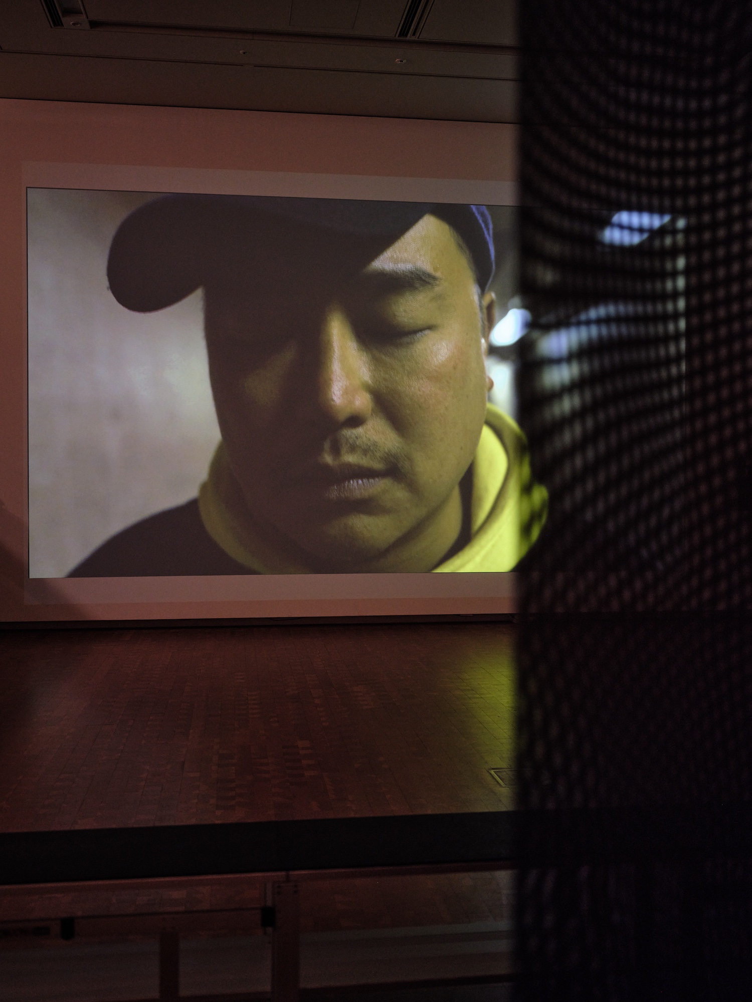 飯山由貴《In-Mates》(2021)、「プラカードのために」展示風景(国立国際美術館、2025)[撮影:山中慎太郎(Qsyum!)]