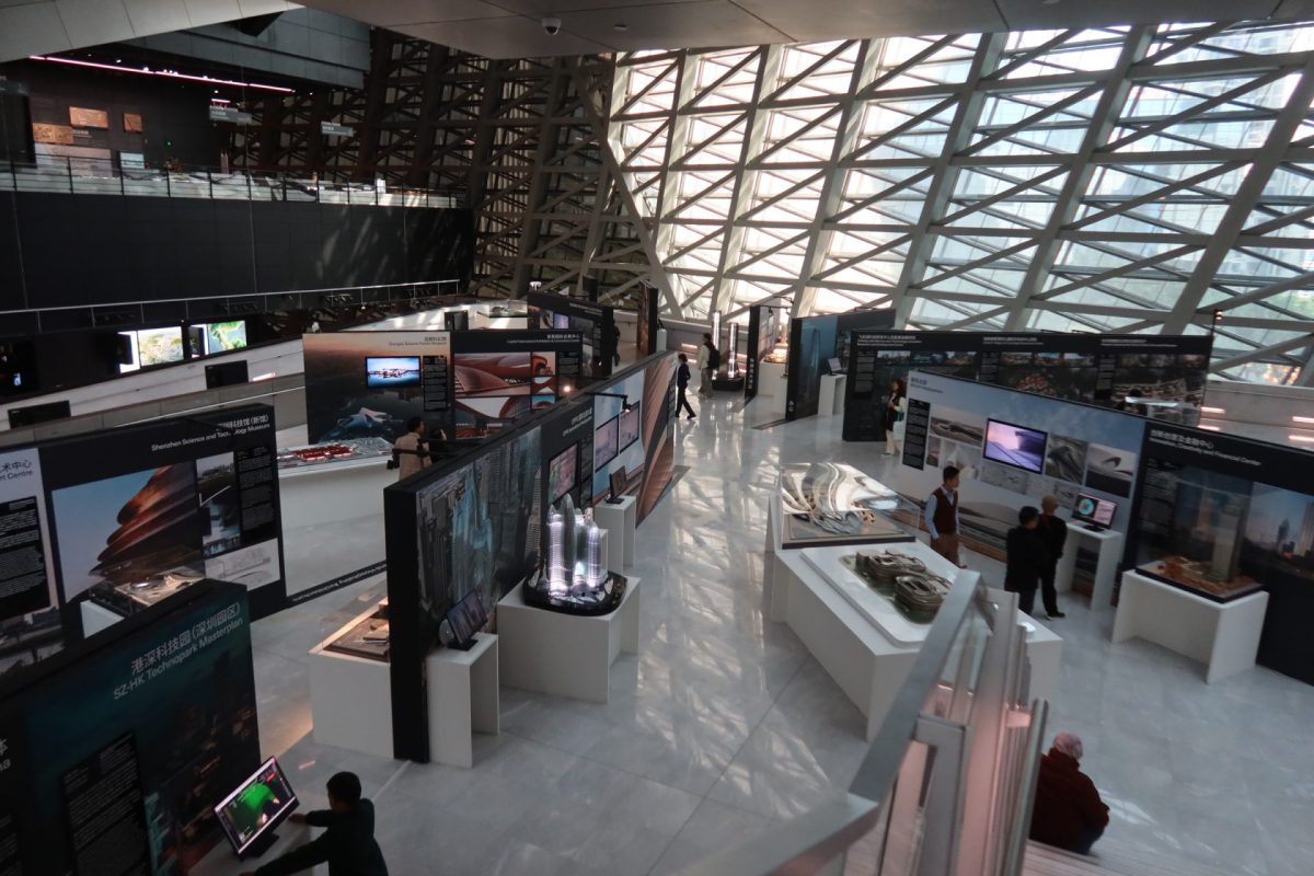こうした施設は、北京や上海などの大都市にも存在し、いずれも巨大な都市模型などを展示しているが、特に《MOCAPE》は重要な建築を個別に選び、設計者の名前も明記していた。また特集展示では、フアン・ドゥの著作『The Shenzhen Experiment: The Story of China’s Instant City(深圳の実験:中国のインスタント都市の物語)』(2020)を取り上げていた。なお、《MOCAPE》の未来的な造形と空間は、コープ・ヒンメルブラウが設計したものだ。