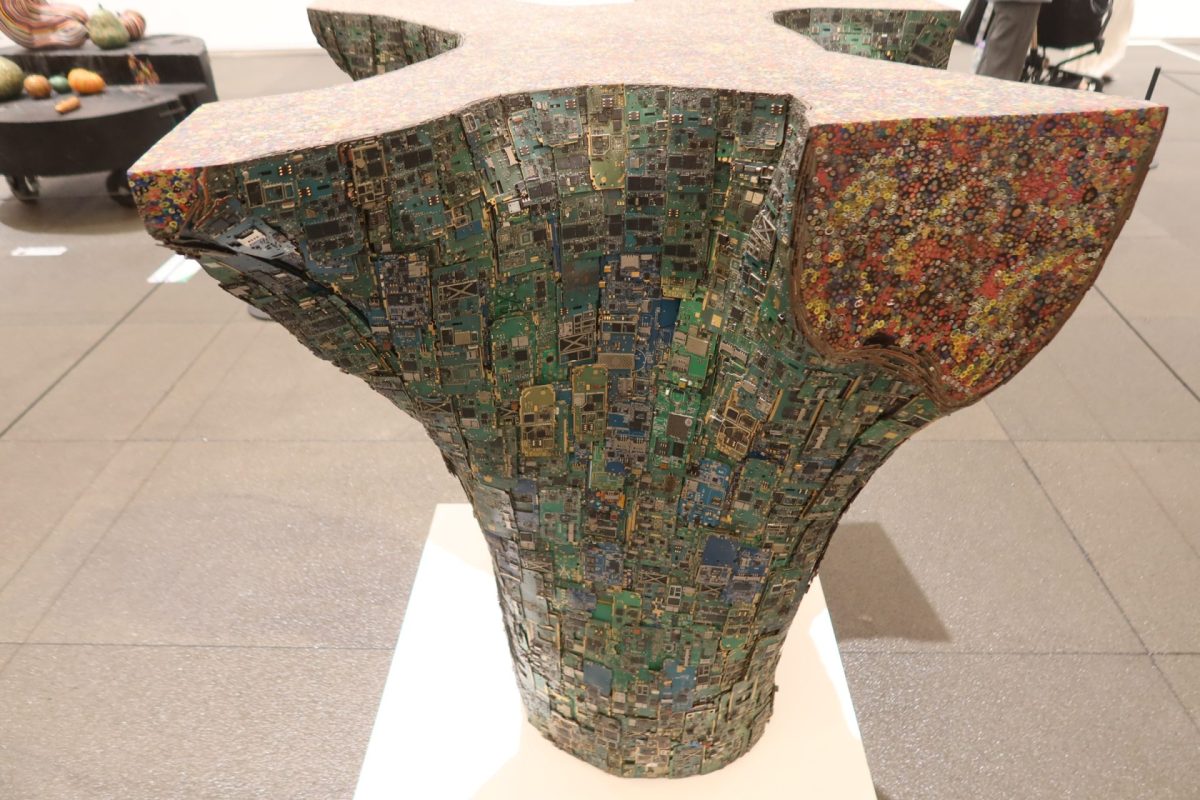 電子製品を再利用した楊光の彫刻作品[著者撮影]