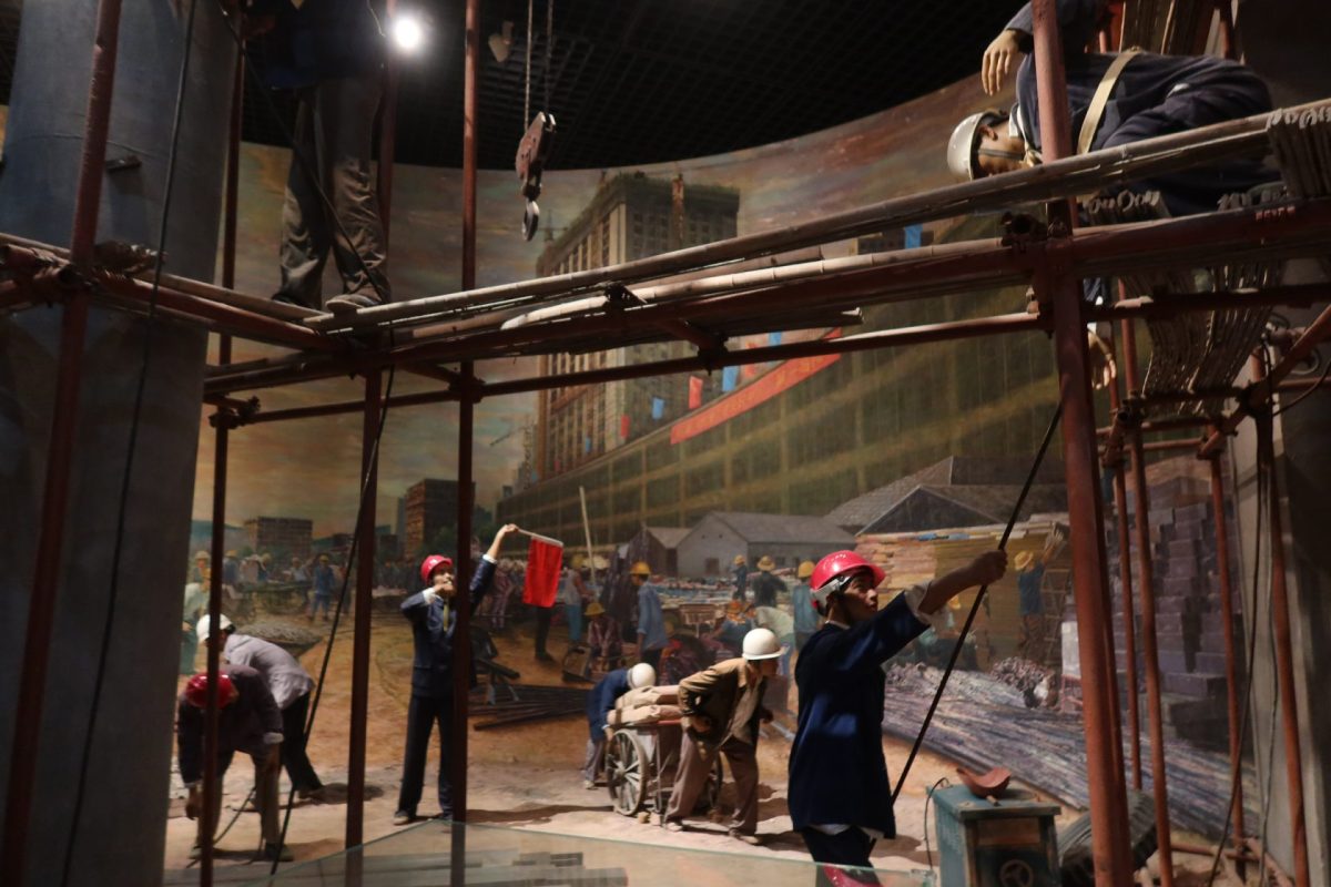 1980年代の建設現場をリアルに再現した展示[著者撮影]