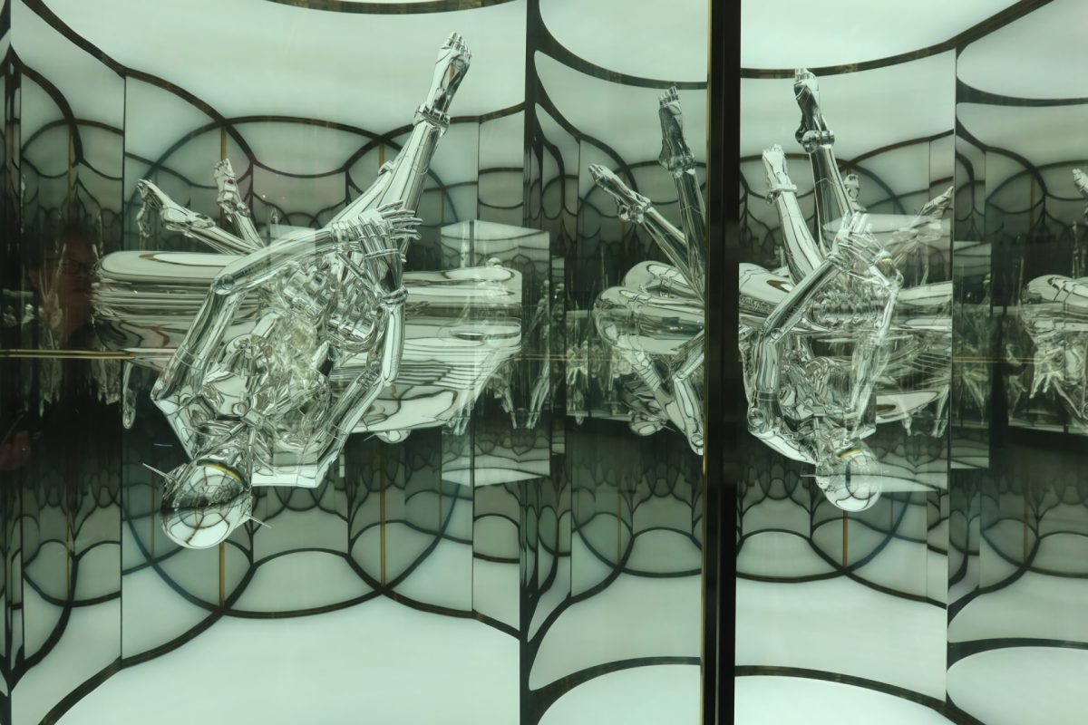 《MOCAPE》の前に設置された空山基の特大ロボット[著者撮影]