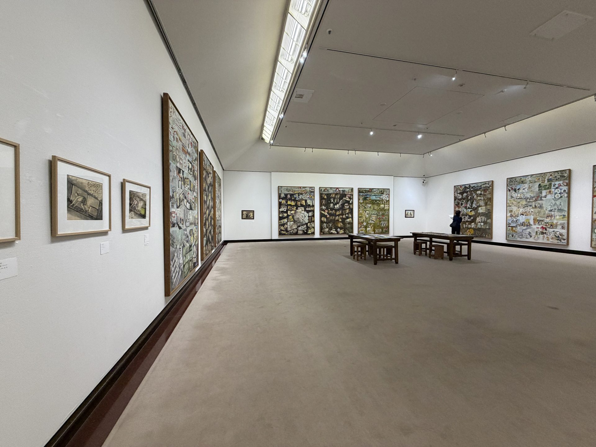 「2. ひらかれた『断片』としての」より、私塾「美学校」の生徒たちによる山本作兵衛の炭鉱記録画の模写を集めた展示室[©Yamamoto Family/筆者撮影]