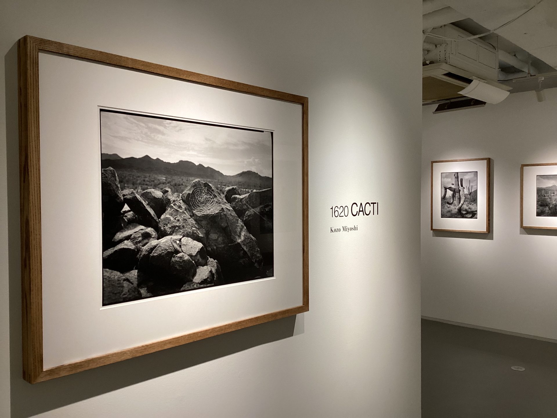 1947年生まれの三好耕三は、アリゾナのサボテン(CACTI)を撮影しにはるばる出かけて、今回の新作展「1620 CACTI」(PGI、2026/1/9-3/14)を開催した。タイトルの「1620」は、16×20インチ判の大判フィルムを使用するカメラで撮影したという意味であり、まさに巨大カメラとしか言いようのない機器を軽々と使いこなす三好の、体力、気力の充実ぶりには驚くしかない。その緻密かつ細部まで目の行き届いたモノクローム・プリントのクオリティの高さも特筆に値する。会場で上映されていた三好の撮影の様子を記録したドキュメント映像を見て、あらためて彼がカラーではなく黒白写真にこだわる理由がわかった気がした。確かにサボテンの植生を含む、砂漠地帯のリアルな現実を写し取るのにはカラー写真の方が適している。だが、カラーだと写真の画面における緊張感と深みが薄れ、平板な画像になってしまう。三好は現実世界そのものよりも、それをモノクロームの写真として変換した像に、より強いシンパシーを感じているということではないだろうか。