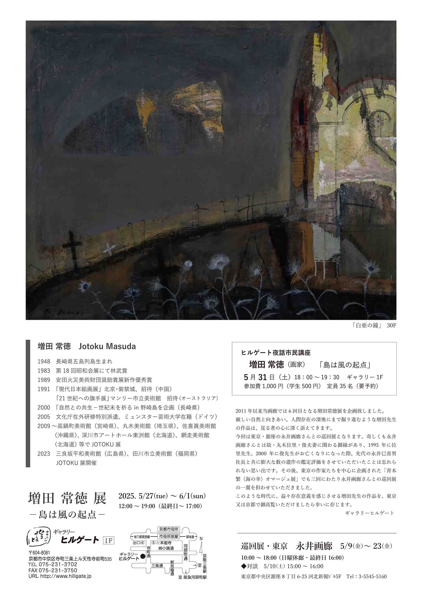 このような時代に、益々存在意義を感じさせる増田先生の作品を、東京又は京都で御高覧いただけましたら幸いに存じます。