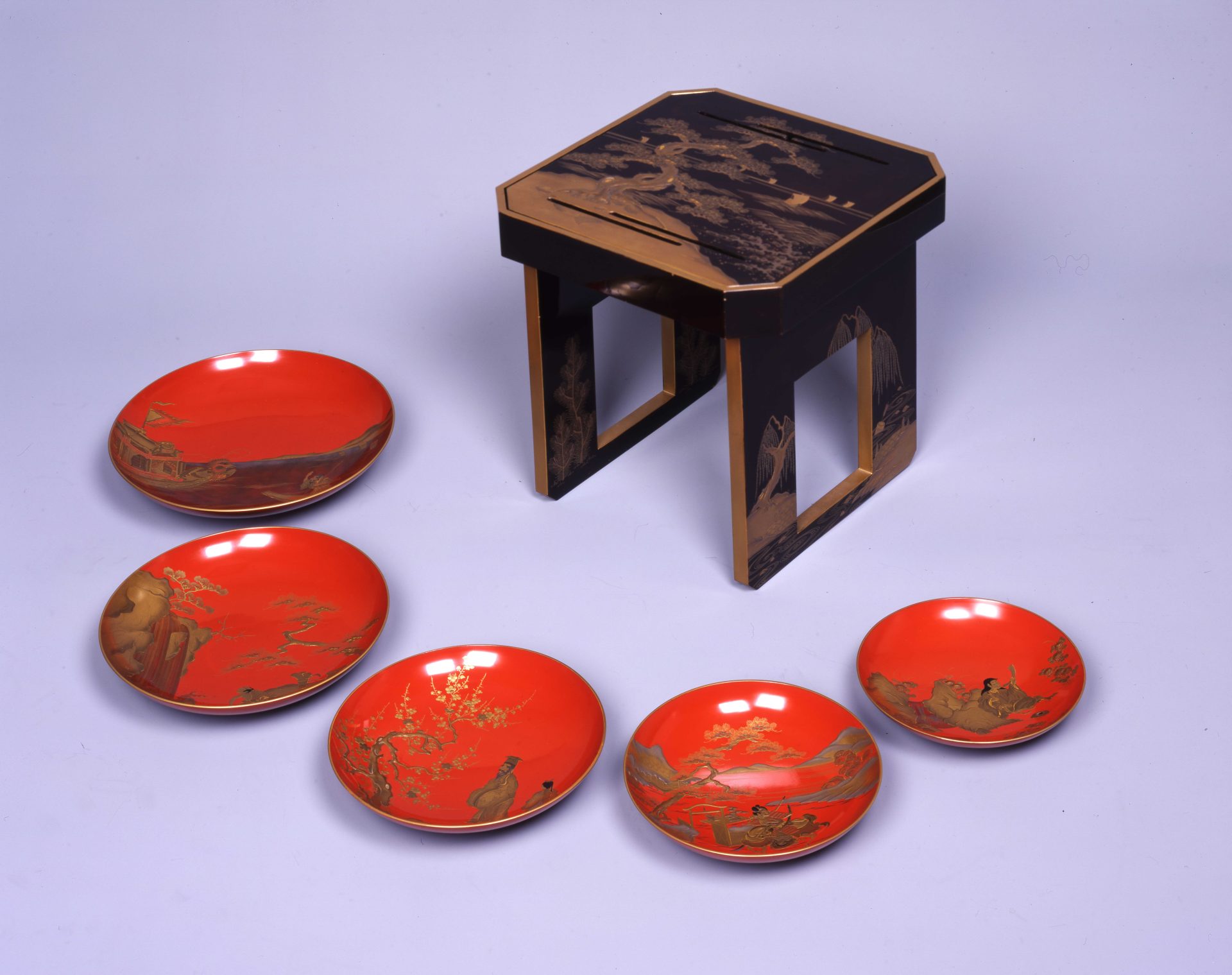 謡曲高砂蒔絵花月台・絵替蒔絵五重盃