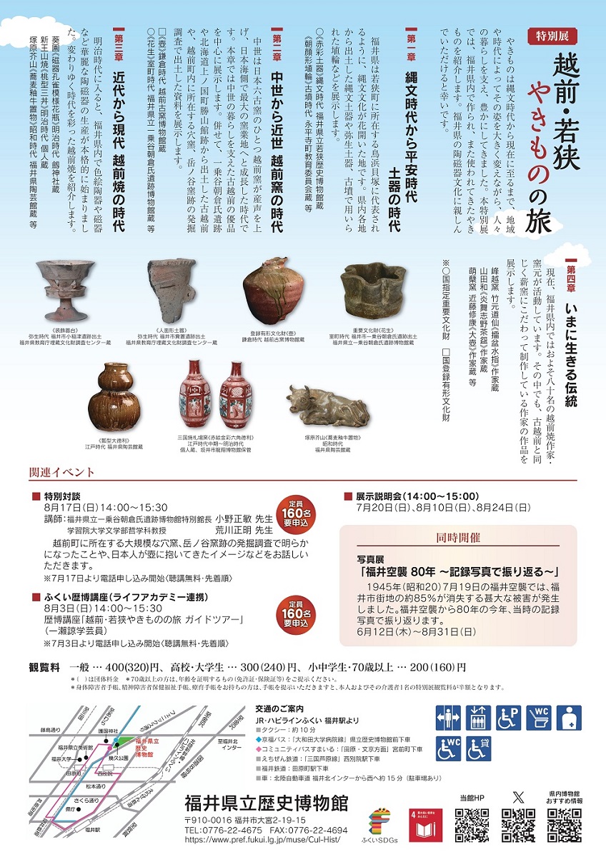 本展では、県内各地の遺跡から出土したやきものや、時代を超えて大切に受け継がれてきたやきものなどを展示し、福井県の陶磁器の歴史と文化を紹介します。