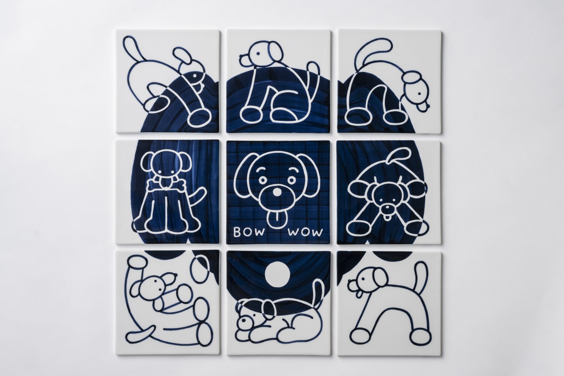 <直筆タイル> *各タイル1点限定作品、磁器 BARA DOGS 1~9 *H15 x W15 x D0.5 (cm) x 9枚