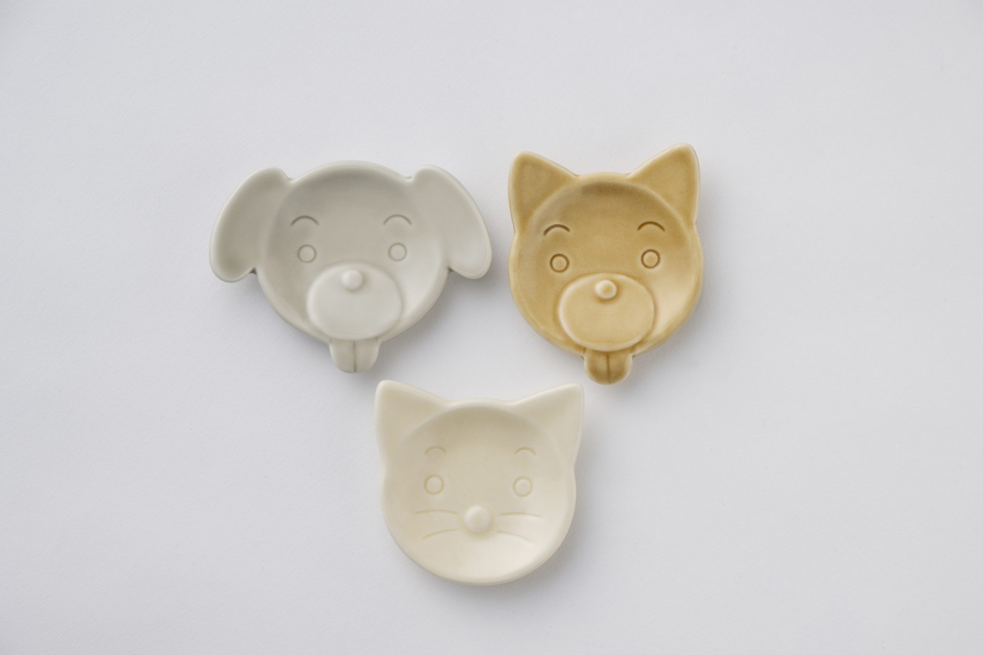 犬や猫は私たち人間とはことなる言語を話しますが、同じ言葉がなくてもそばにいて、一緒に時間を過ごしてくれるともだちのような存在だと感じています。彼らと同じように、生活に寄り添い佇んでくれるオブジェを中外陶園さんと一緒につくりました。