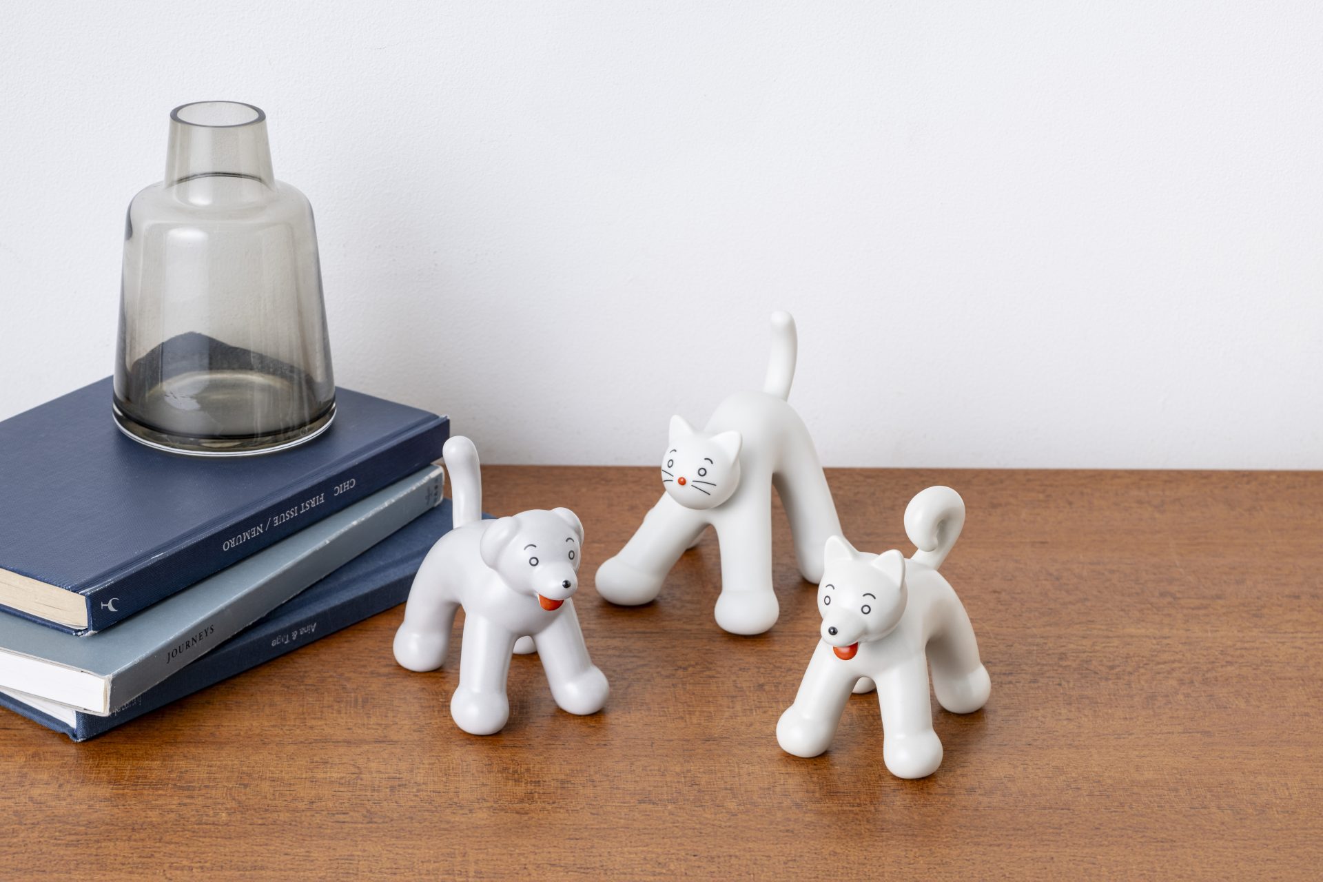 <オブジェ> *磁器 左から「DOG A」(クールグレー)、「CAT」(白)、「DOG B」 (ウォームグレー)