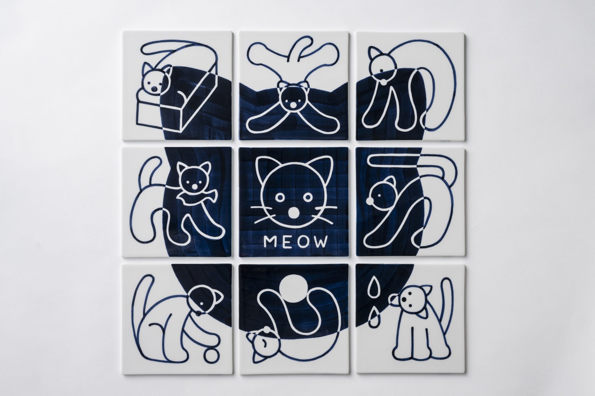 <直筆タイル> *各タイル1点限定作品、磁器 CUT CATS 1~9 *H15 x W15 x D0.5 (cm) x 9枚