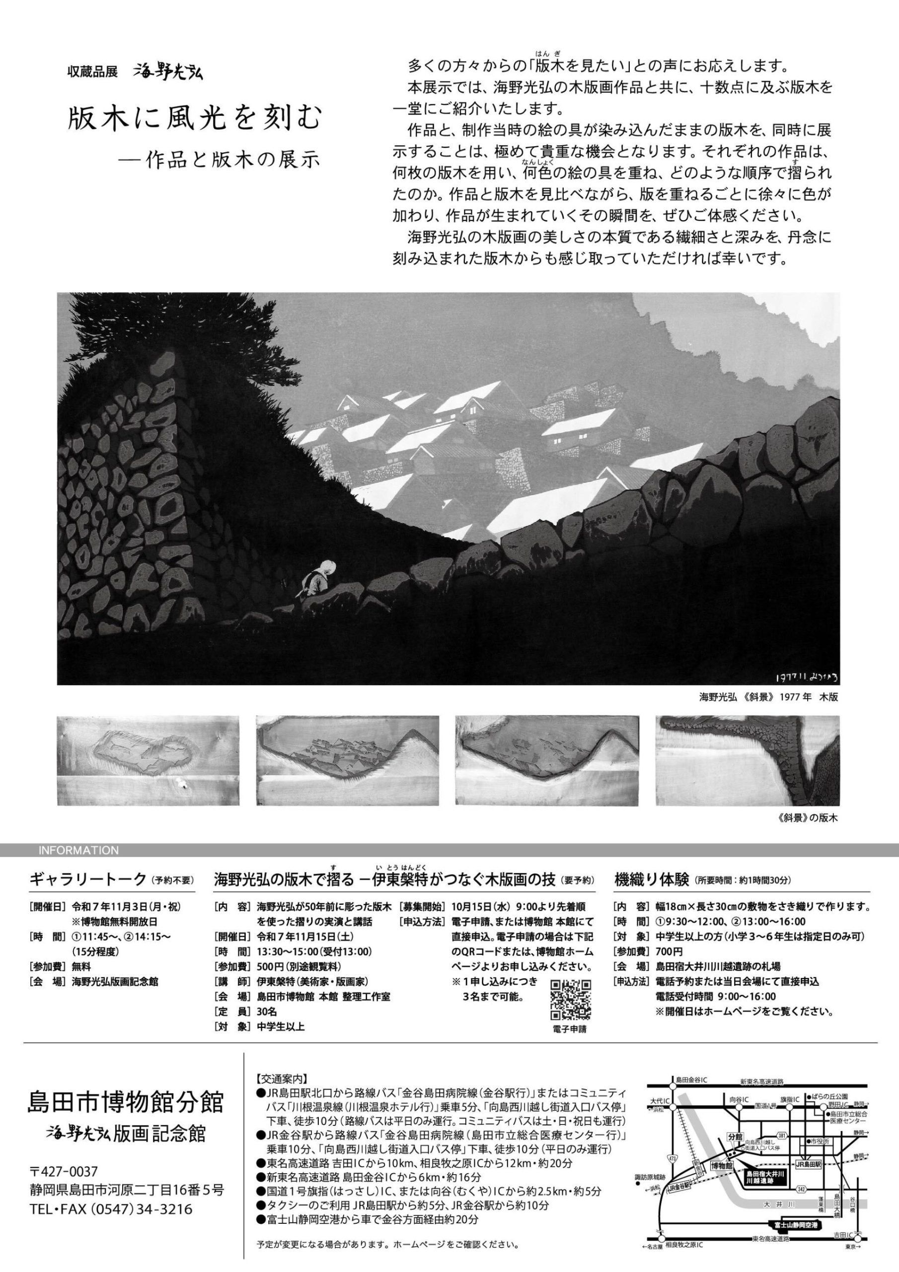 島田市博物館分館 収蔵品展 海野光弘 版木に風光を刻む―作品と版木の展示