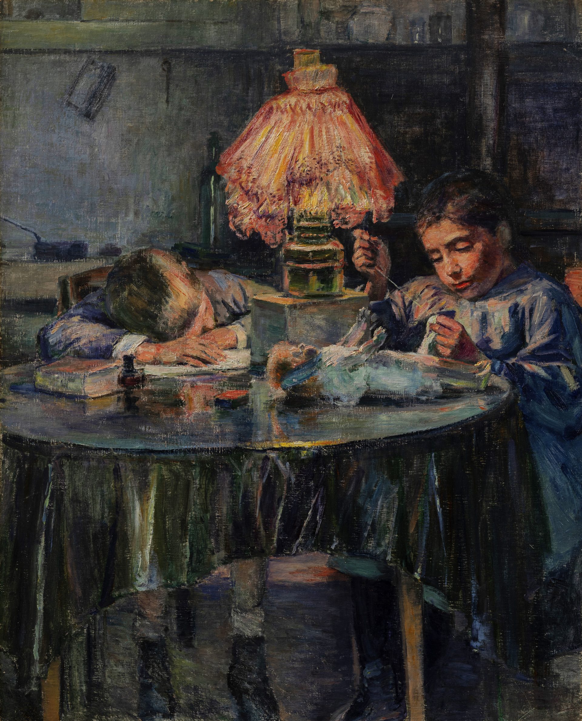 黒田清輝「洋燈と二児童」ひろしま美術館蔵