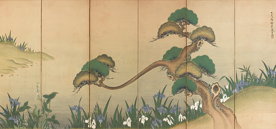 尾形乾山《松燕子花図》個人蔵