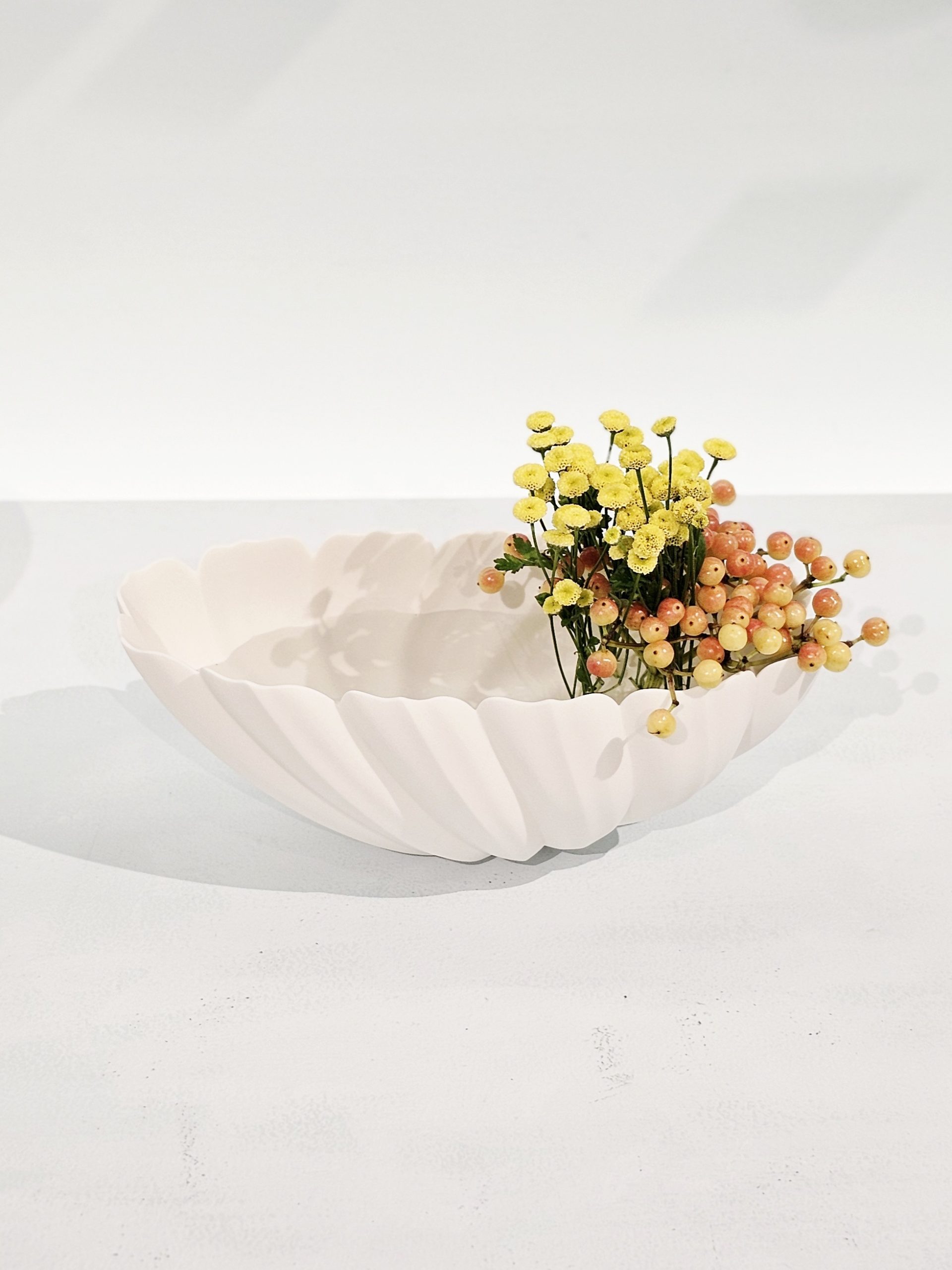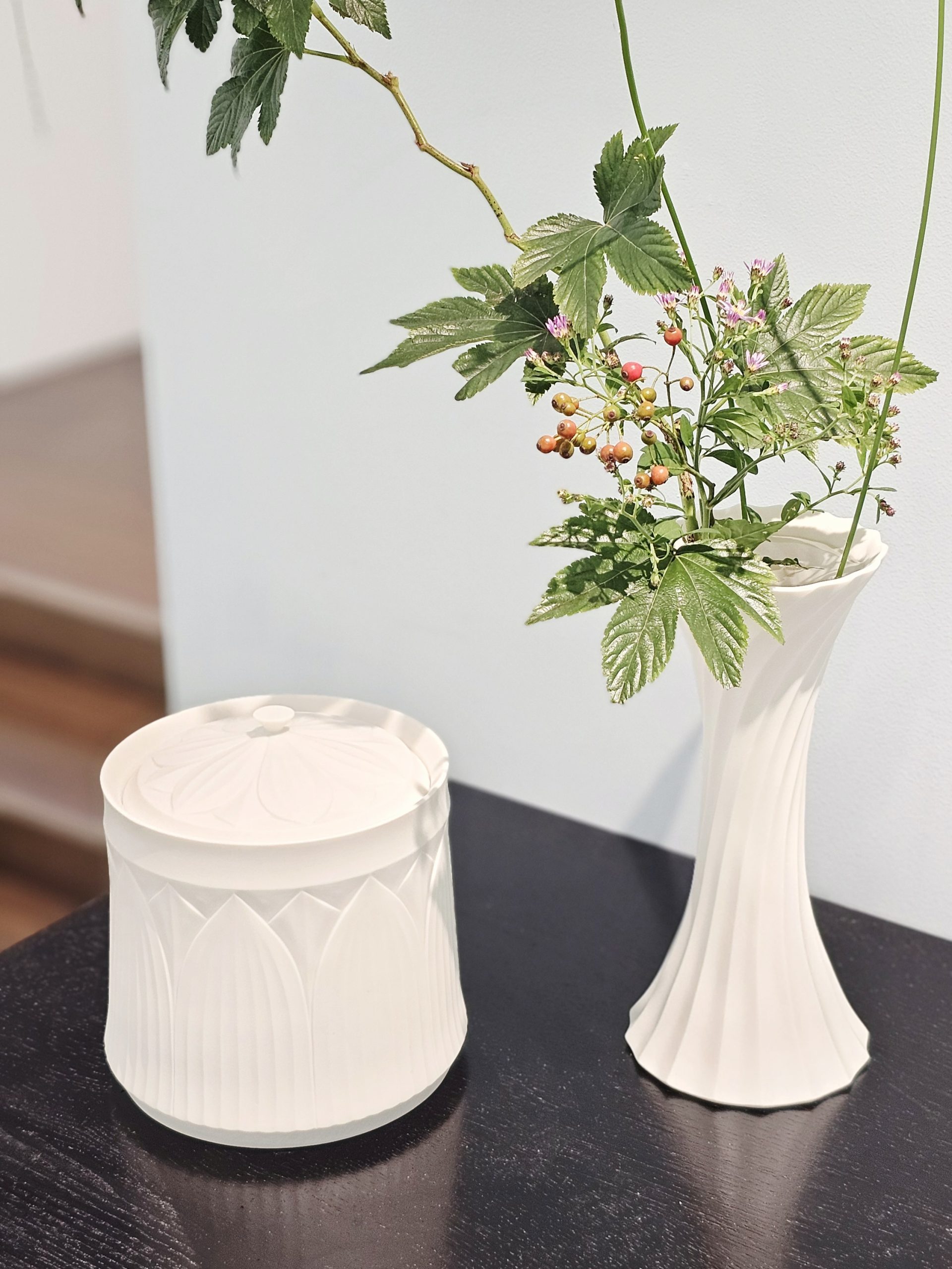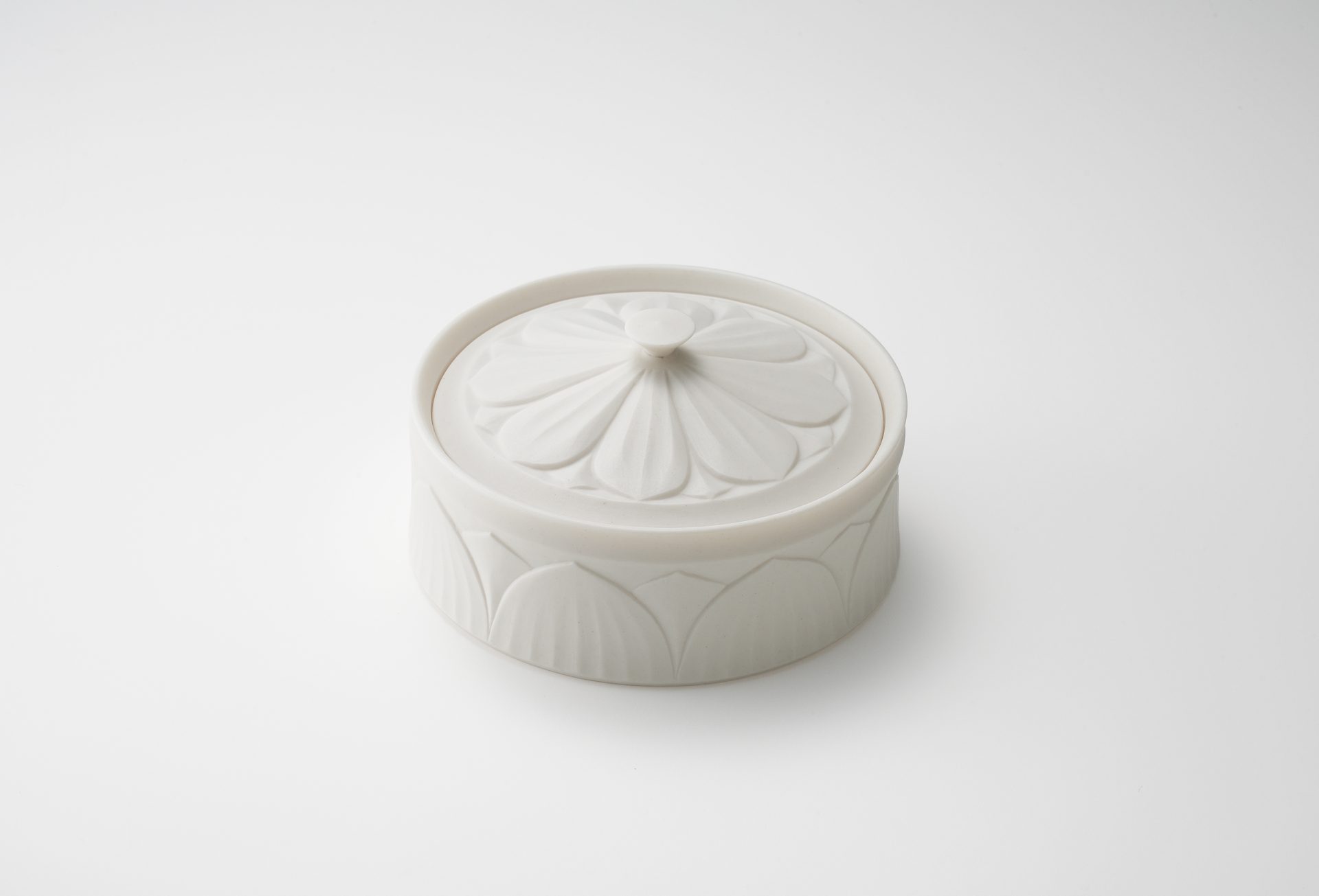 今作について「自分が大切にしたいものを入れる特別な器としての存在であること、心の拠り所として寄り添える道具であることを目指して制作している」と語られています。白磁の陰影が生かされた柔らかなラインと、凛とした佇まいが神聖さを感じさせる作品をぜひご覧ください。