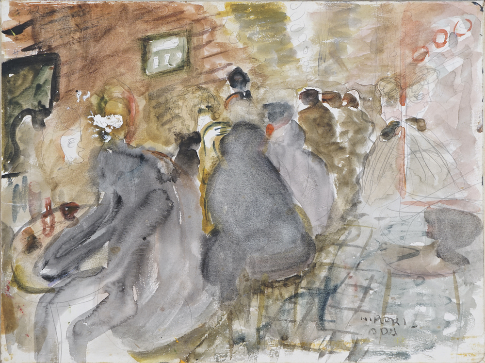 バーにて 水彩 23.4x24.3cm1966年頃 23.0×30.5 cm